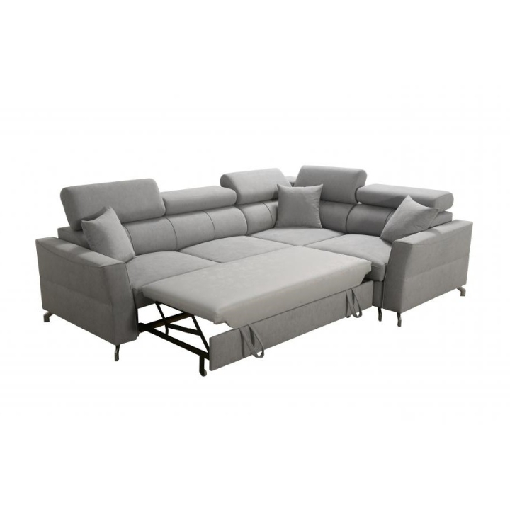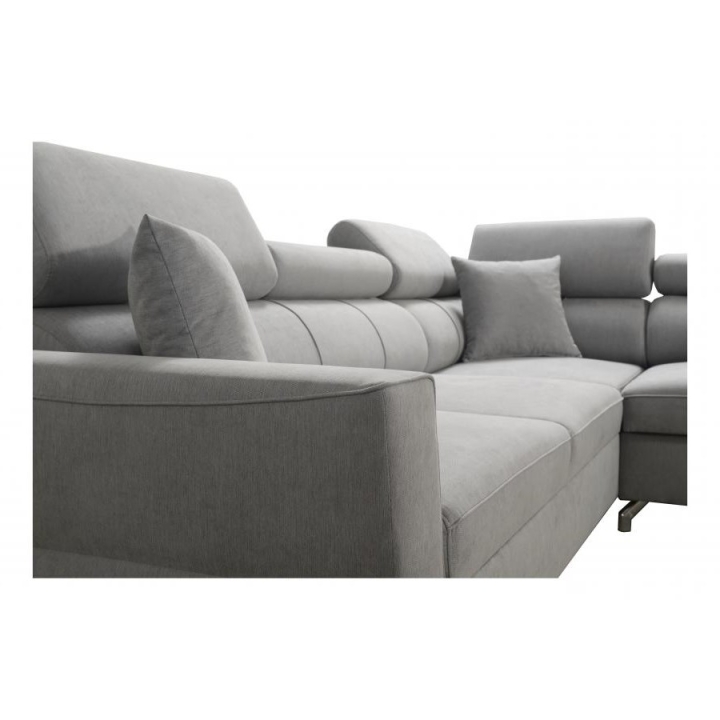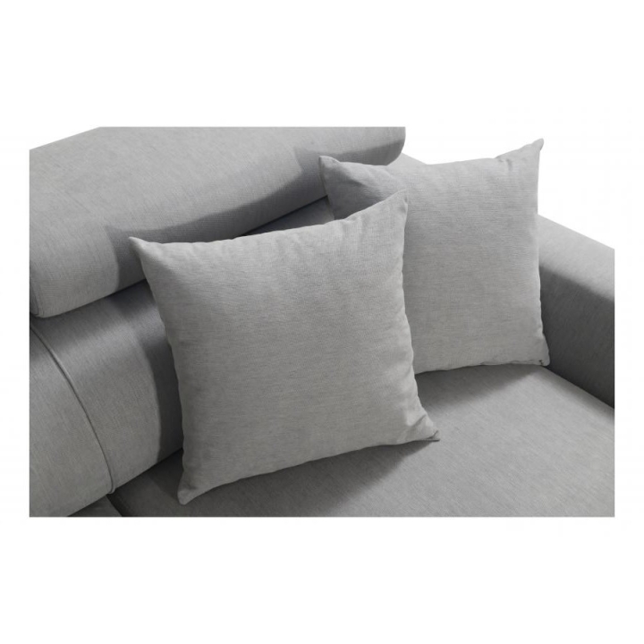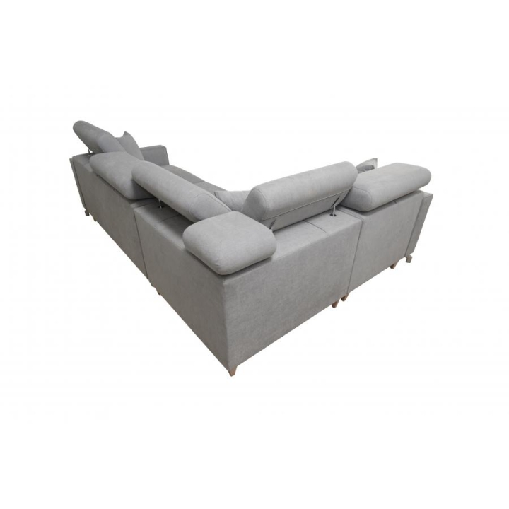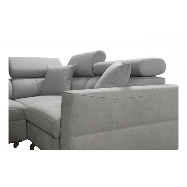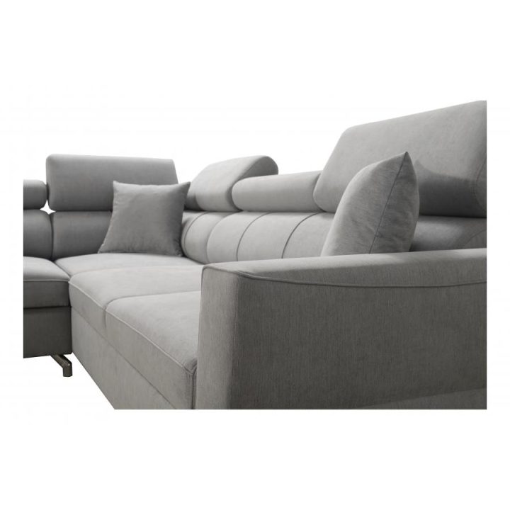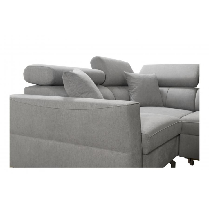 Komfort użytkowania podnoszą 5 regulowanych zagłówków, pozwalających na dostosowanie podparcia do indywidualnych potrzeb. Konstrukcję wykonano na sprężynach falistych i utwardzonej piance T-30, a cały mebel wzmocniono stelażem opartym na ramie drewnianej łączonej z płytą wiórową. W zestawie znajdują się również poduszki widoczne na zdjęciu – gratis, stanowiące uzupełnienie zestawu wypoczynkowego.