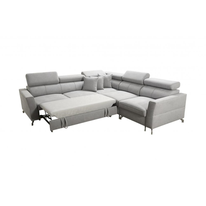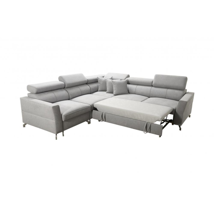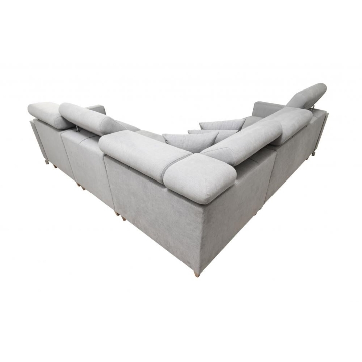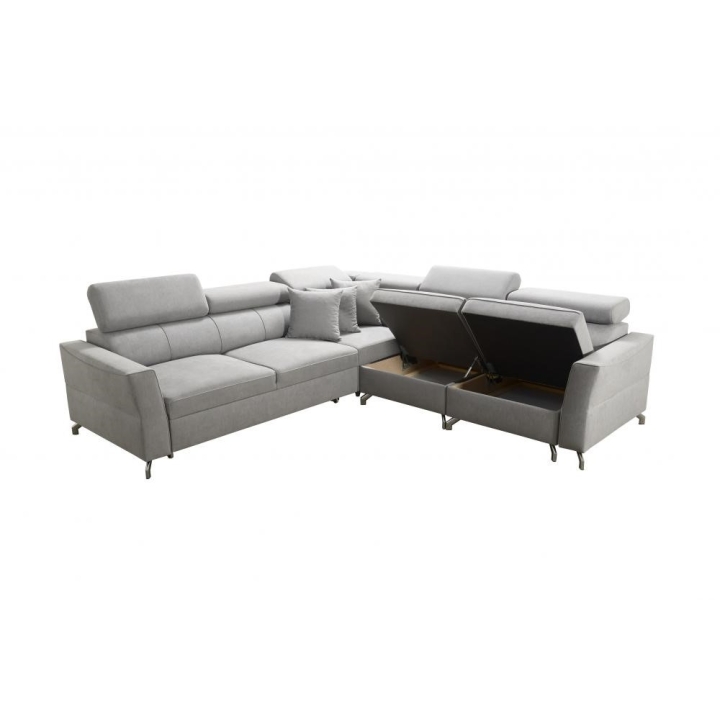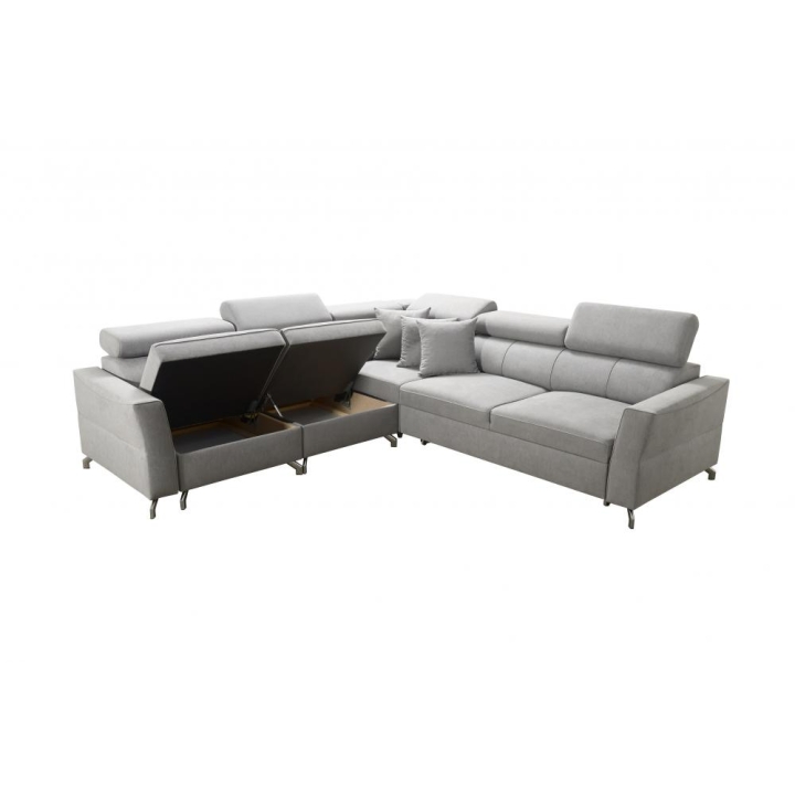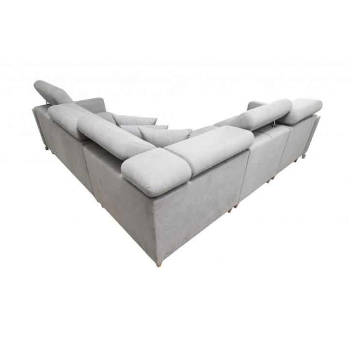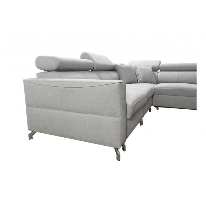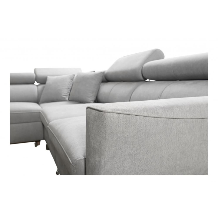 Model wyposażono w 6 regulowanych zagłówków, które pozwalają na dostosowanie podparcia głowy do aktualnych potrzeb użytkownika. Dodatkowym udogodnieniem są 2 pojemniki na pościel, umożliwiające utrzymanie porządku w strefie wypoczynkowej. Konstrukcja mebla opiera się na sprężynach falistych oraz utwardzonej piance T-30, gwarantujących odpowiednią trwałość i stabilność podczas wieloletniej eksploatacji.