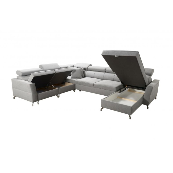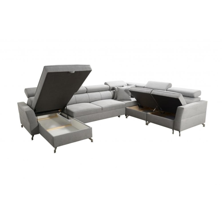 Model wyposażono w 6 regulowanych zagłówków, umożliwiających dopasowanie podparcia do preferencji użytkownika. Do dyspozycji znajdują się także 2 pojemniki na pościel, zapewniające miejsce do przechowywania tekstyliów. Konstrukcja została przygotowana z dużą starannością: zastosowano sprężyny faliste, utwardzoną piankę T-30, a całość wzmocniono drewnianą ramą łączoną z płytą wiórową.