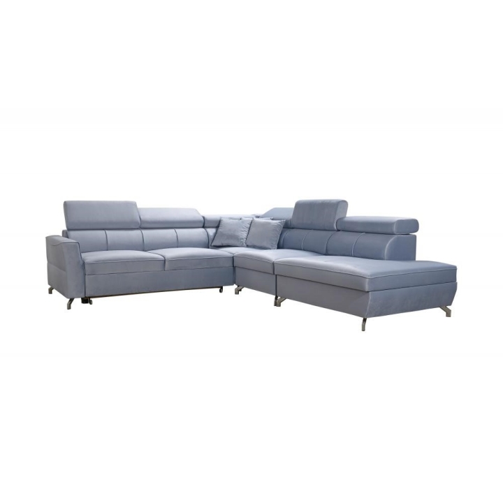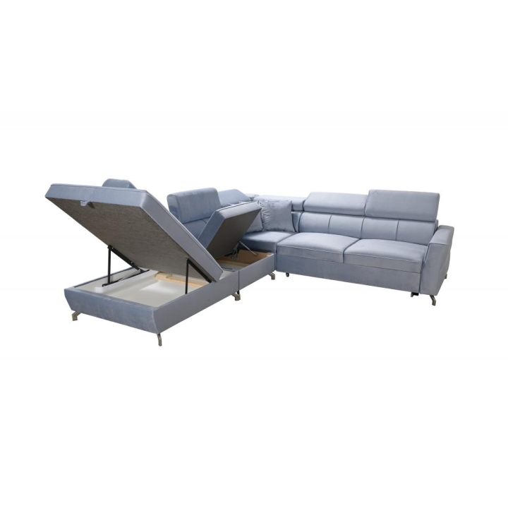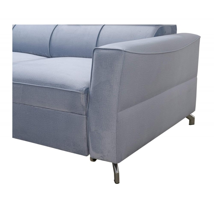 Narożnik może zostać osadzony na różnorodnych stopkach przednich: metal chrom, metal czarny mat lub wariantach drewnianych w kolorach czarnym, białym, olcha, venge, buk. Z tyłu dostępne są stopki drewniane w tych samych wybarwieniach lub opcjonalnie chrom za dopłatą. Dzięki rozbudowanemu konfiguratorowi możliwe jest dopasowanie tapicerki do indywidualnych preferencji estetycznych. Do wyboru pozostają dziesiątki tkanin o różnych fakturach, kolorach i właściwościach, co pozwala z łatwością wpisać mebel w zamierzony koncept aranżacyjny. Mebel oferuje nie tylko wygodę użytkowania, ale też możliwość pełnej personalizacji wizualnej.