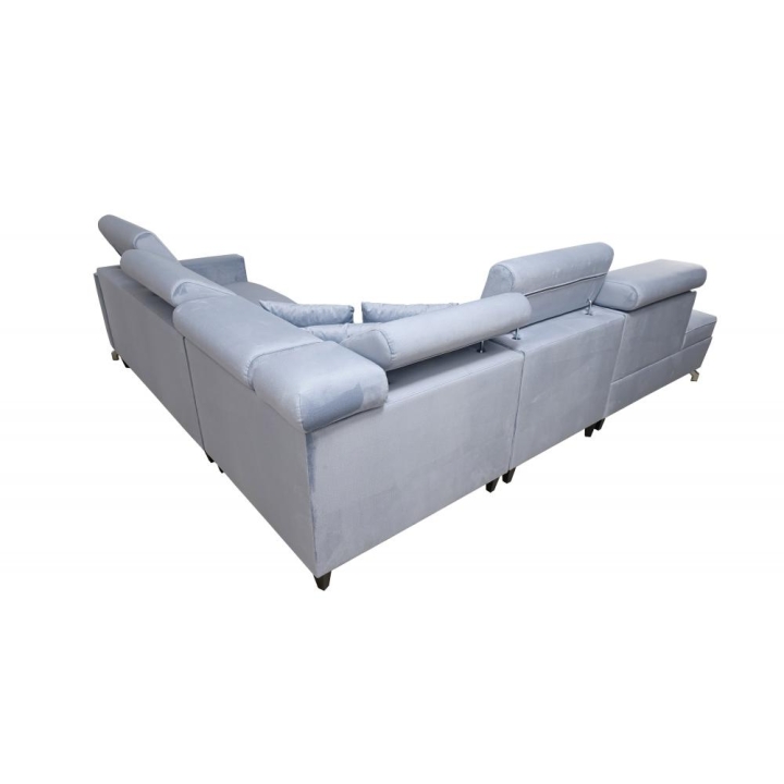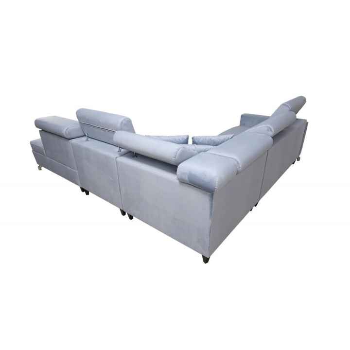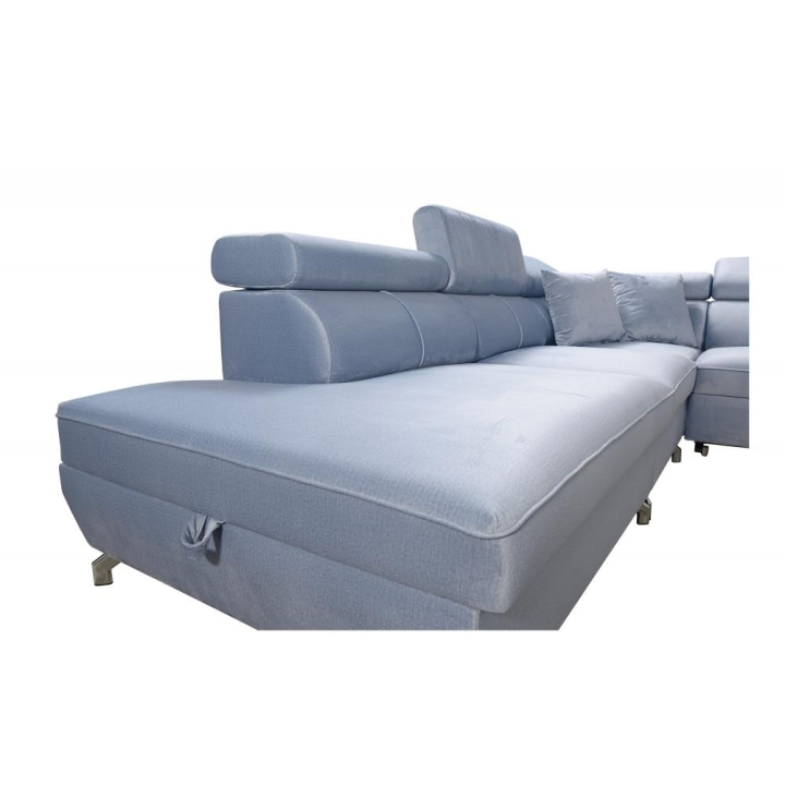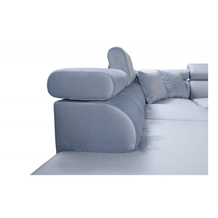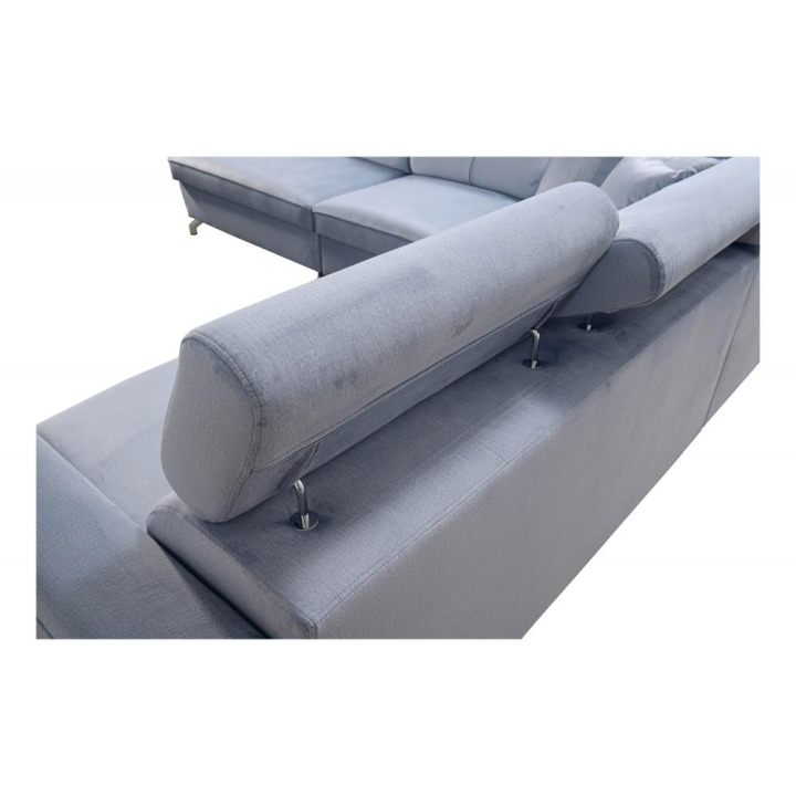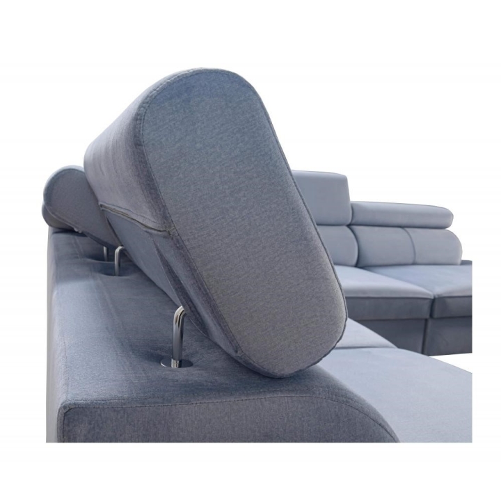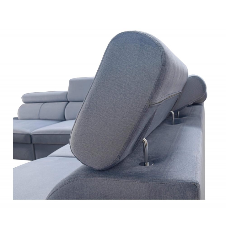 Model wyposażono w 6 regulowanych zagłówków, które umożliwiają dostosowanie poziomu podparcia do bieżących potrzeb. Zastosowanie sprężyn falistych oraz utwardzonej pianki T-30 wpływa na stabilność siedziska i wieloletnią trwałość całej konstrukcji. Całość wspiera wzmocniony stelaż wykonany na ramie drewnianej łączonej z płytą wiórową, co znacząco podnosi odporność mebla na intensywną eksploatację.