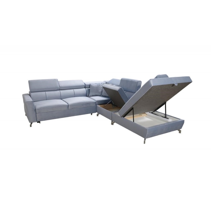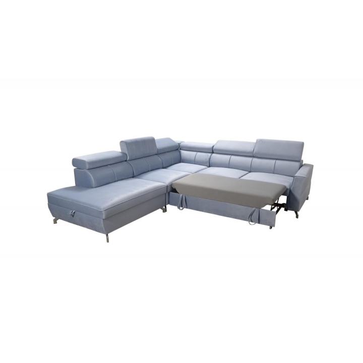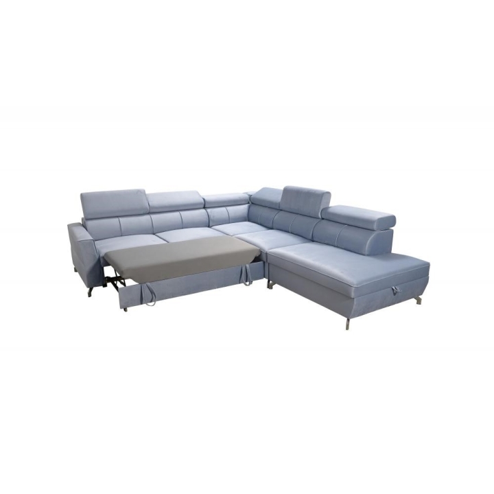 Narożnik został wyposażony w funkcję spania DELFIN, która pozwala na szybkie przygotowanie dodatkowego miejsca do nocnego odpoczynku. Powierzchnia spania wynosi 210 × 127 cm, dzięki czemu sprawdza się w roli wygodnego posłania dla dwóch osób. Wysokość siedziska 47 cm ułatwia wstawanie oraz zapewnia właściwą ergonomię podczas siedzenia.
