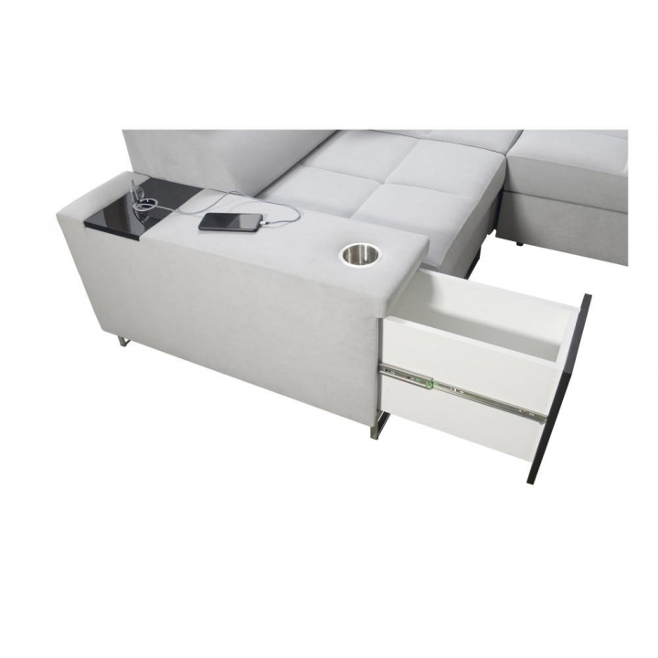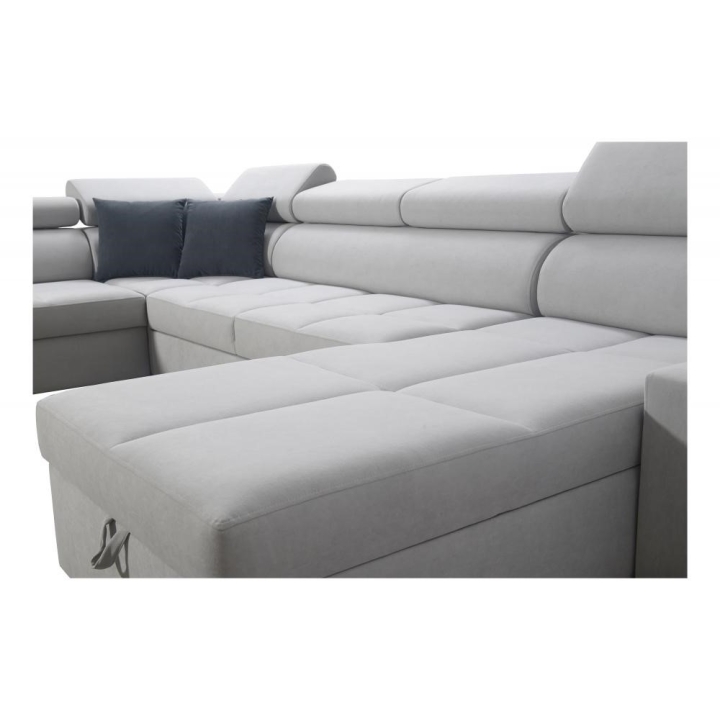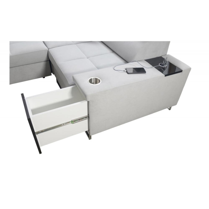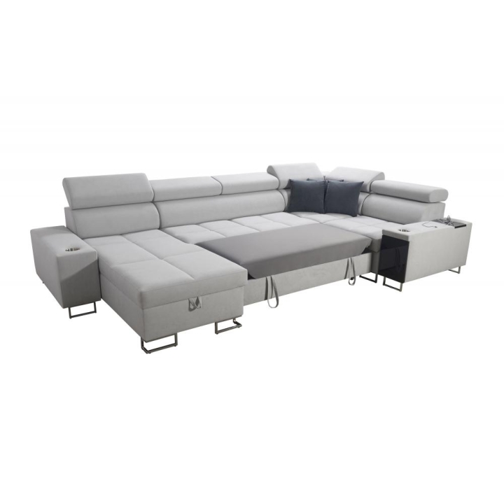 Model oferuje możliwość rozłożenia do spania, zapewniając powierzchnię 284 × 127 cm. W konstrukcji przewidziano 2 pojemniki na pościel, które ułatwiają organizację przestrzeni w salonie. Dodatkowym elementem wyposażenia jest otwierany barek, podnoszący komfort użytkowania podczas codziennego wypoczynku.