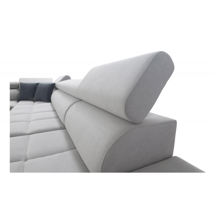 Narożnik został wyposażony w 6 regulowanych zagłówków, pozwalających na indywidualne ustawienie podparcia głowy i karku. Wbudowane wejście USB oraz gniazdo elektryczne zwiększają wygodę korzystania z urządzeń elektronicznych bez potrzeby stosowania przedłużaczy. Konstrukcja oparta jest na sprężynach falistych, utwardzonej piance T-30, a całość wzmocniono stelażem na ramie drewnianej łączonej z płytą wiórową, z wykorzystaniem tkanin najwyższej jakości.