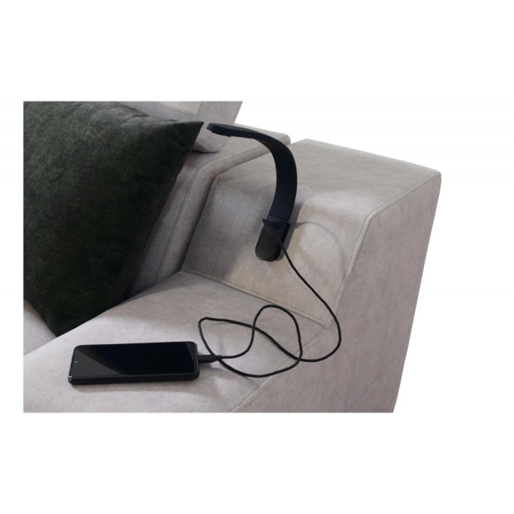 Zastosowano sprężyny faliste, utwardzoną piankę T-30 oraz wzmocniony stelaż na ramie drewnianej łączonej z płytą wiórową, co przekłada się na trwałość konstrukcji. Uzupełnieniem jest zestaw wielofunkcyjnej lampy z ładowaniem USB i elastycznym ramieniem, zasilanej 12V/230V, o neutralnej barwie oświetlenia. Do wyboru pozostają stopki przednie: metal chrom lub metal czarny mat, a także stopki tylne: drewniane w kolorze czarnym, białym, olcha, venge, buk lub chrom za dopłatą 60 zł.
