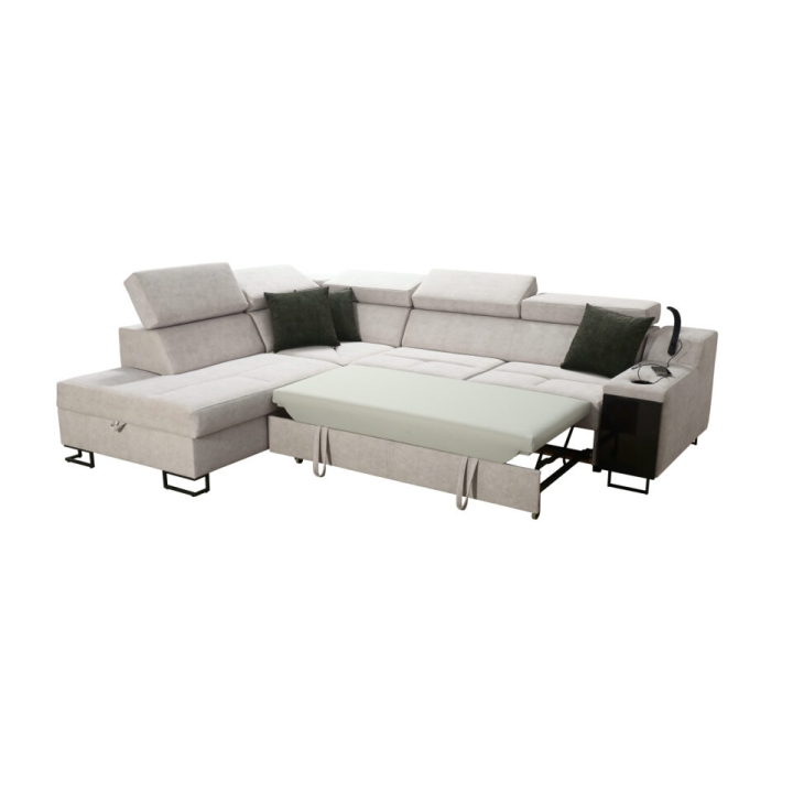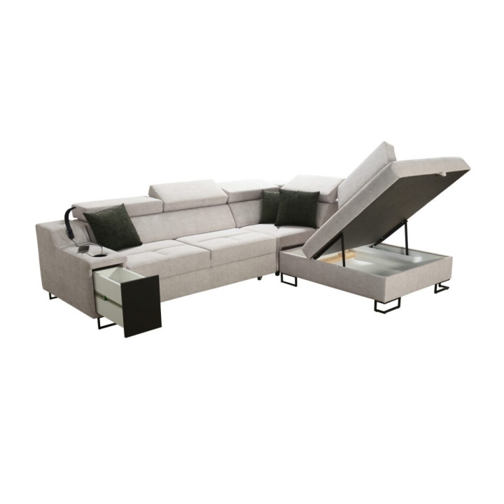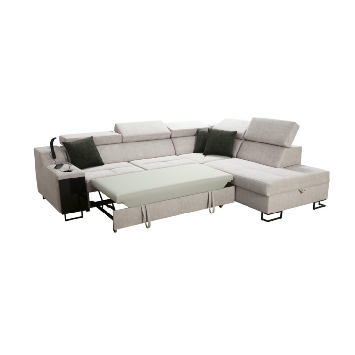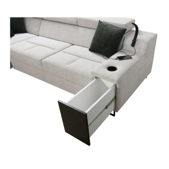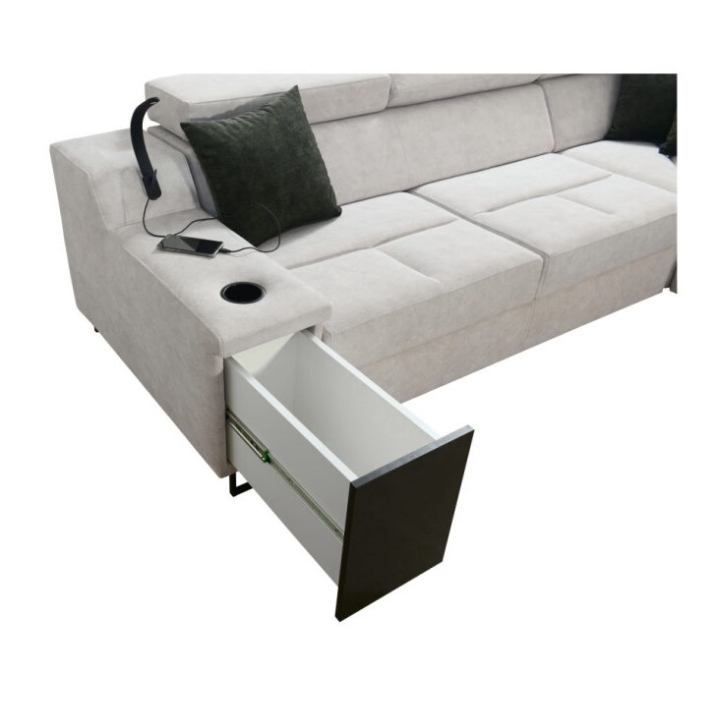 Komfort użytkowania zapewnia wypełnienie siedziska z pianki utwardzonej T-30 o grubości 10 cm, natomiast powierzchnia spania została wykonana z pianki T-30 o grubości ok. 7 cm. Po rozłożeniu uzyskuje się powierzchnię spania 210 cm x 127 cm, odpowiednią do codziennego wypoczynku nocnego. Dodatkowym atutem jest 1 pojemnik na pościel, który ułatwia organizację przestrzeni.