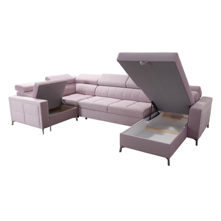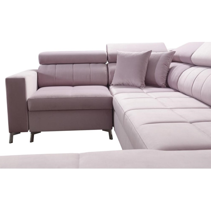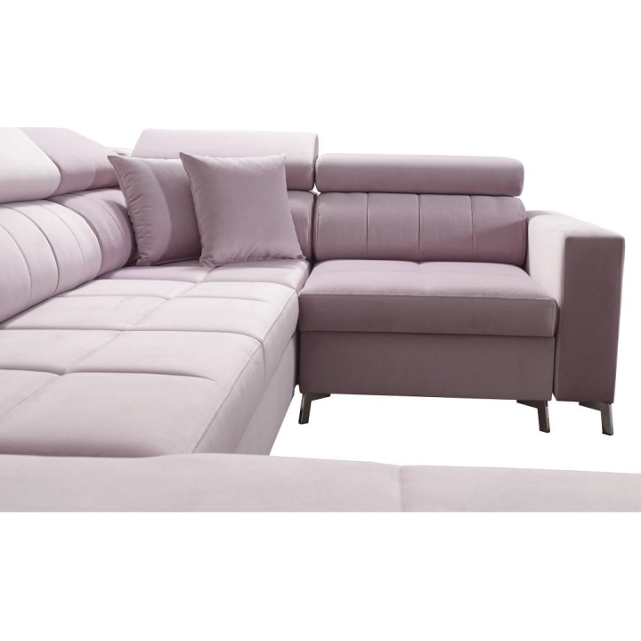 W konstrukcji zastosowano sprężyny faliste oraz utwardzoną piankę T-30, a całość oparto na wzmocnionym stelażu wykonanym na ramie drewnianej łączonej z płytą wiórową. Mebel posiada 6 regulowanych zagłówków, pozwalających na indywidualne ustawienie oparcia. Do wyboru pozostają stopki przednie: metal chrom lub metal czarny mat, a także stopki tylne: drewniane w kolorze czarnym, białym, olcha, venge i buk lub chrom – za dopłatą.