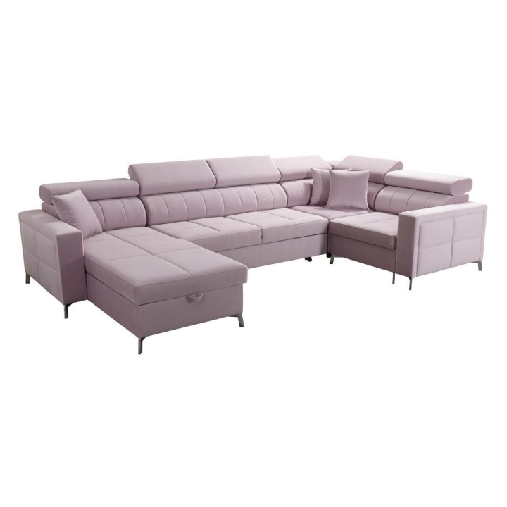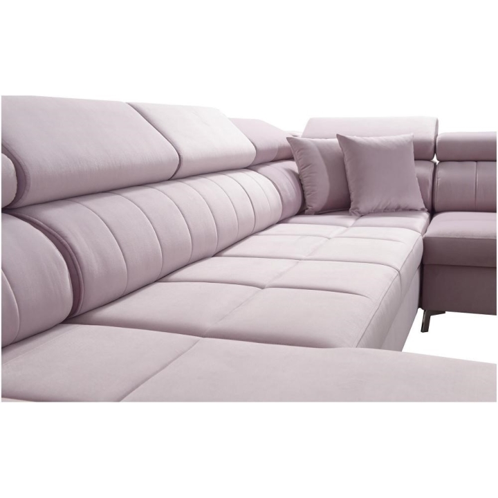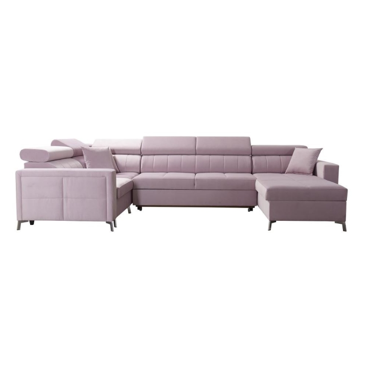 Narożnik Sydeon V Maxi Brattex to rozbudowana bryła wypoczynkowa zaprojektowana w kształcie U, dostępna w wersji prawostronnej lub lewostronnej. Konstrukcja została przygotowana z myślą o przestronnych wnętrzach, oferując wyraźnie zarysowane strefy siedzenia i relaksu. Model ten wyróżnia się starannym wykonaniem oraz dbałością o detale widoczne w całej formie mebla.