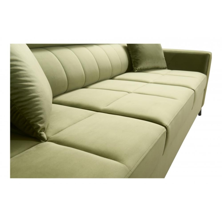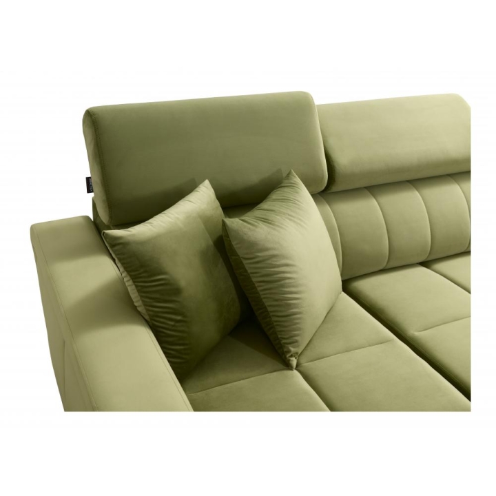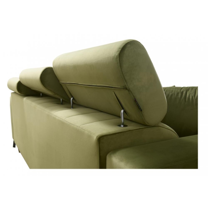 Narożnik może zostać w całości wykonany z dowolnej tkaniny dostępnej w ofercie producenta. Dzięki rozbudowanemu konfiguratorowi możliwe jest dopasowanie tapicerki do indywidualnych preferencji estetycznych, obejmujących dziesiątki materiałów o zróżnicowanej fakturze, kolorystyce i właściwościach użytkowych. Mebel zapewnia wysoki komfort codziennego użytkowania oraz pełną personalizację wizualną, co pozwala bez trudu wpisać go w zamierzony koncept aranżacyjny.