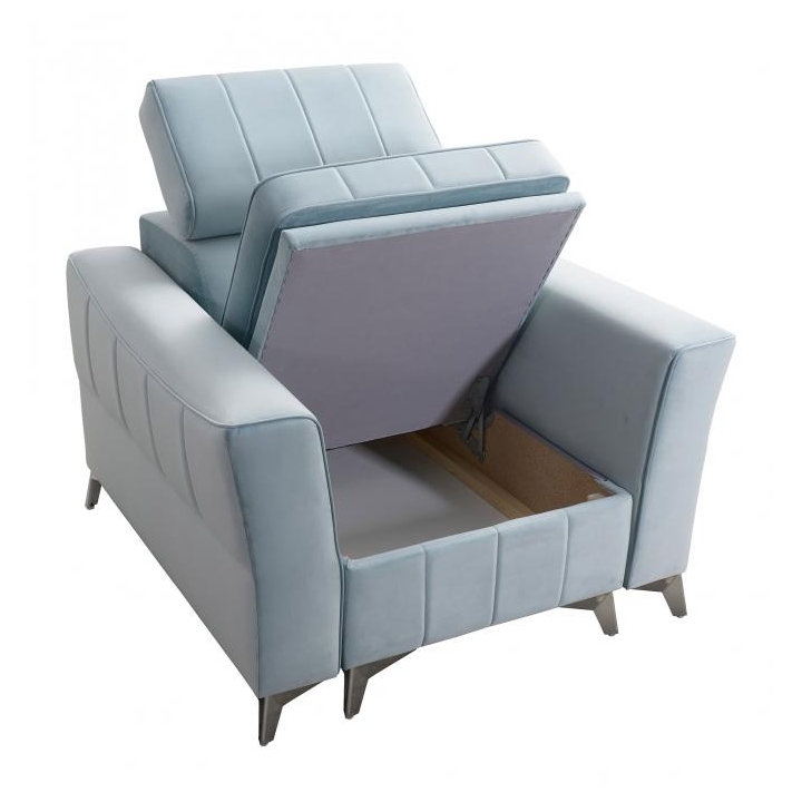 Model został wyposażony w 1 pojemnik, który może służyć do przechowywania koca, poduszki lub innych drobnych akcesoriów domowych. Rozwiązanie to pozwala zachować porządek w strefie wypoczynku bez potrzeby stosowania dodatkowych mebli. Całość konstrukcji zachowuje spójność wizualną oraz stabilność użytkową.