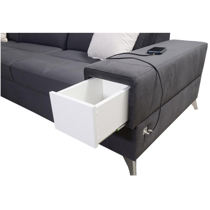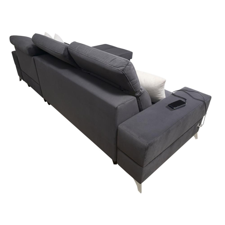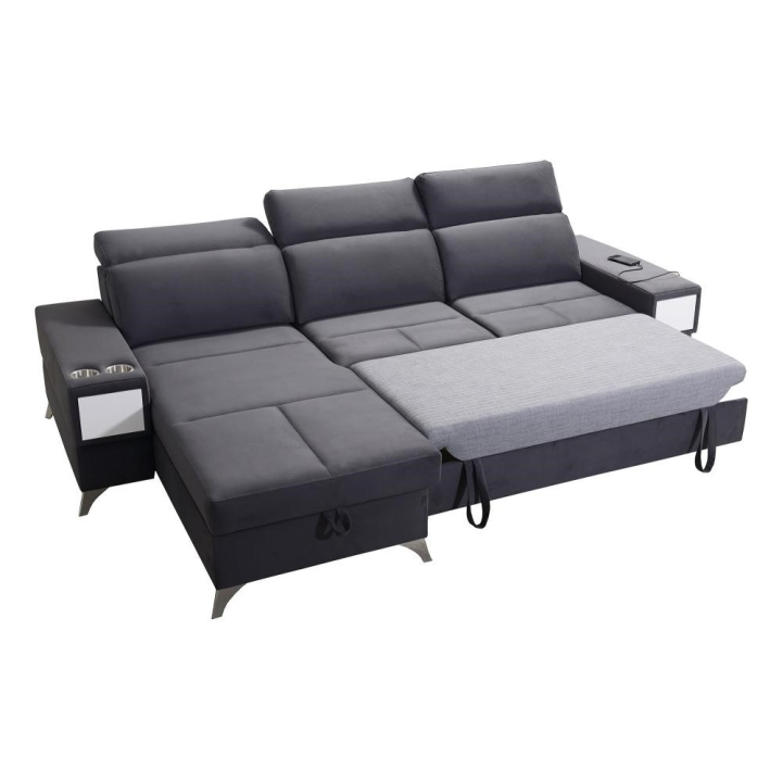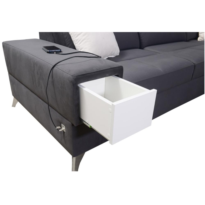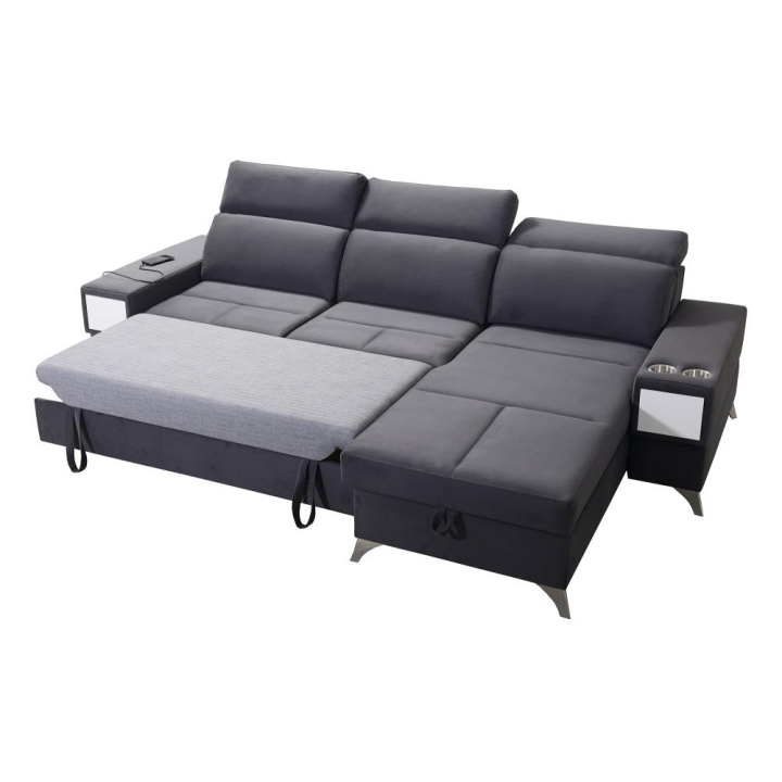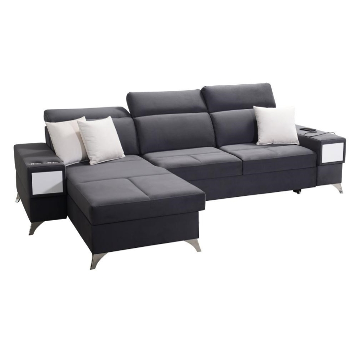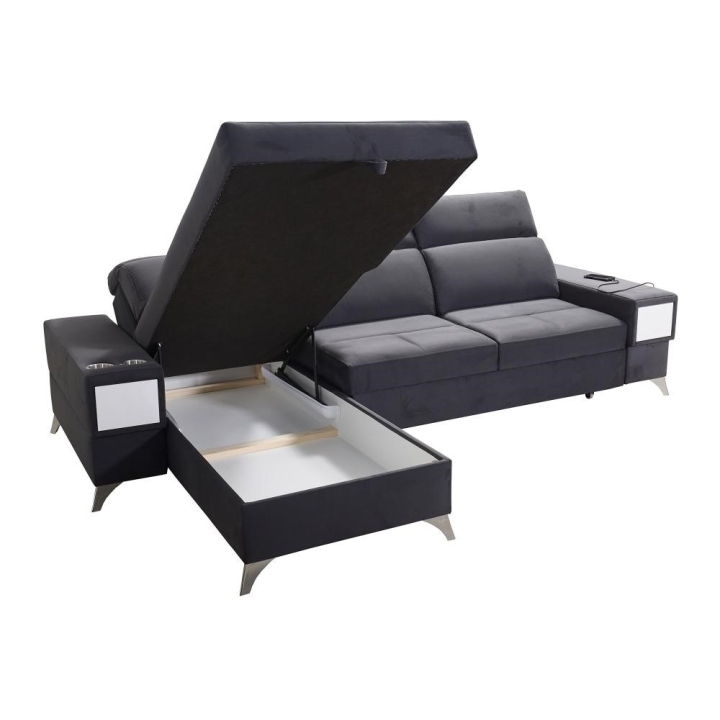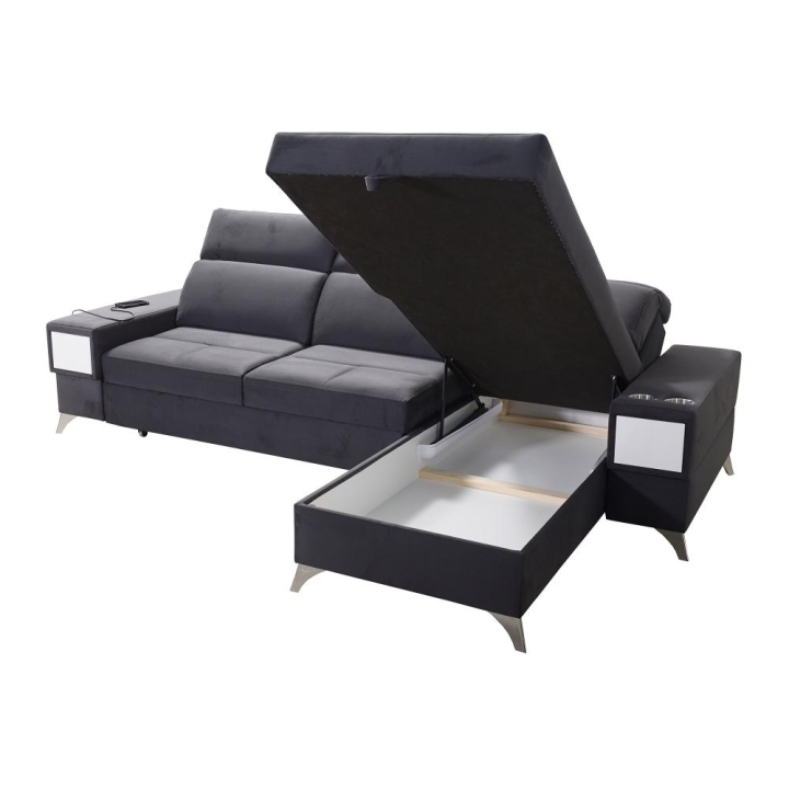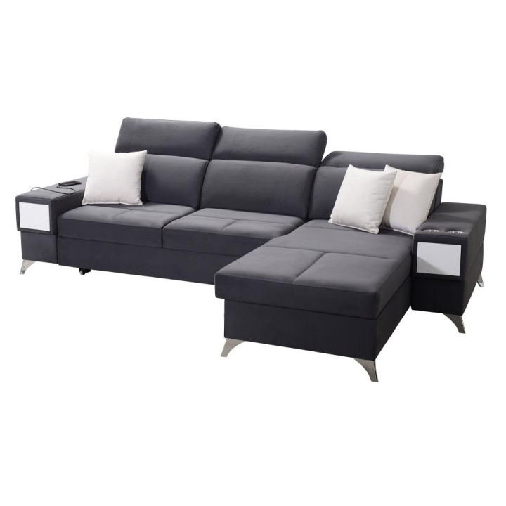 Wyposażenie obejmuje 3 regulowane zagłówki, które umożliwiają indywidualne dopasowanie oparcia. Do dyspozycji użytkownika pozostaje także wysuwana szufladka, USB dostępne w kolorze czarnym lub srebrnym oraz kubki w kolorze czarnym lub srebrnym, umieszczone w półkach bocznych.