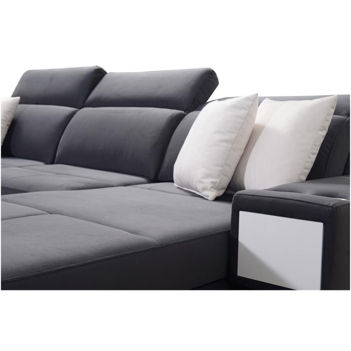 Narożnik Deux I Brattex to rozbudowany mebel wypoczynkowy przeznaczony do przestronnych wnętrz mieszkalnych. Jego bryła została zaprojektowana z myślą o codziennym użytkowaniu oraz okazjonalnym nocnym wypoczynku. Całość uzupełniają poduszki widoczne na zdjęciu, stanowiące integralny element zestawu.