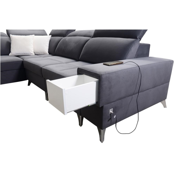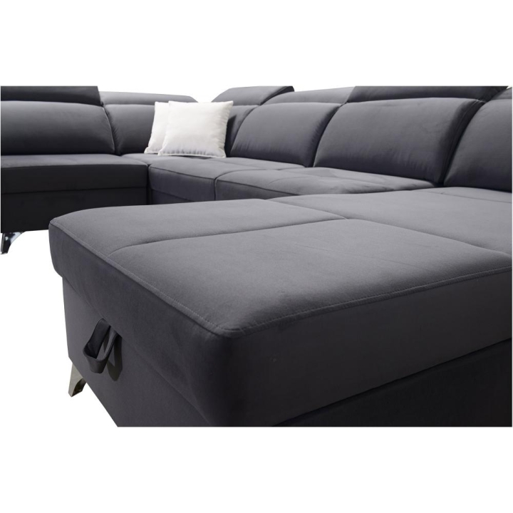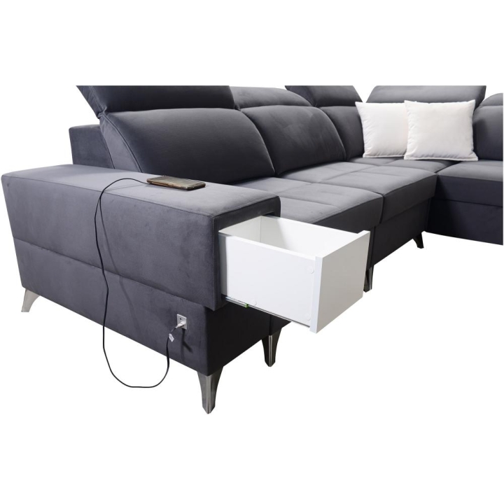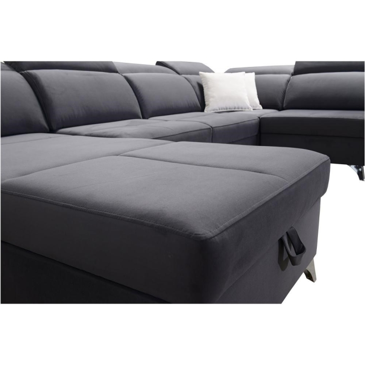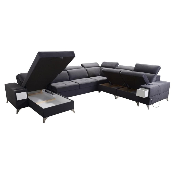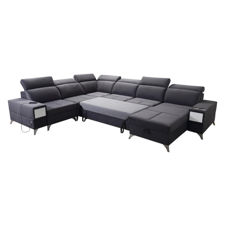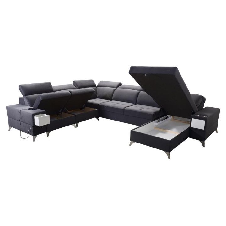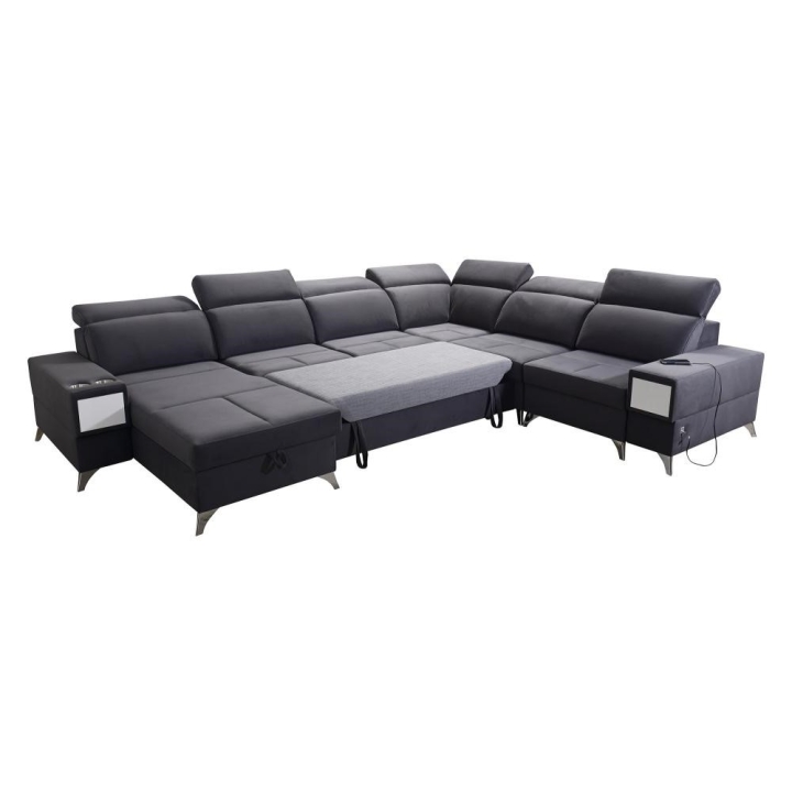 W części środkowej zastosowano mechanizm rozkładania, który tworzy powierzchnię spania 283 cm x 122 cm, odpowiednią do codziennego lub okazjonalnego wypoczynku nocnego. Pod siedziskami znajdują się 3 pojemniki na pościel, umożliwiające przechowywanie koców, kołder oraz poduszek bez potrzeby użycia dodatkowych mebli. Całość uzupełnia wysuwana szufladka, dyskretnie wkomponowana w konstrukcję.