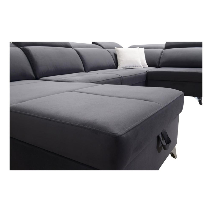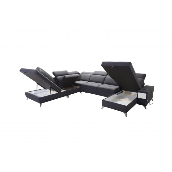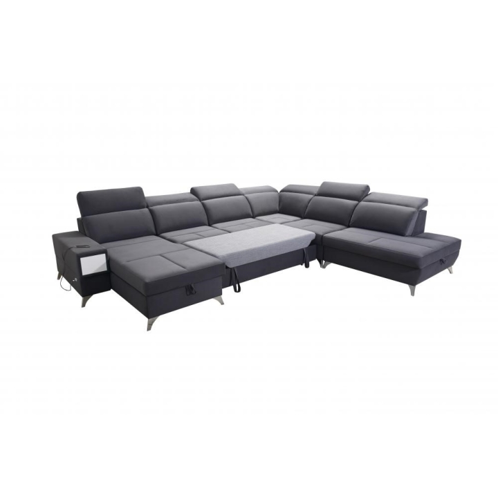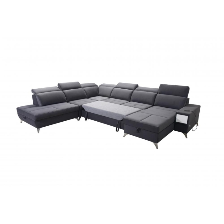 Po rozłożeniu mebel oferuje powierzchnię spania 283 cm x 122 cm, odpowiednią do nocnego odpoczynku dla dwóch osób. W konstrukcji przewidziano 3 pojemniki na pościel, które ułatwiają przechowywanie koców i kołder bez konieczności zajmowania dodatkowej przestrzeni w szafach. Rozwiązanie to sprzyja utrzymaniu porządku w strefie dziennej.