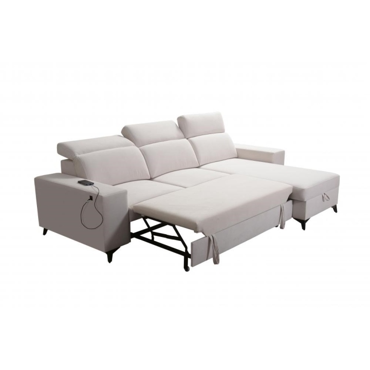 Model wyposażono w 3 regulowane zagłówki, umożliwiające indywidualne dopasowanie pozycji podczas relaksu czy oglądania telewizji. Zintegrowane gniazdo USB dostępne w kolorze czarnym lub srebrnym pozwala na ładowanie urządzeń mobilnych bez potrzeby stosowania dodatkowych przedłużaczy. W zestawie znajdują się również poduszki widoczne na zdjęciu – gratis, stanowiące uzupełnienie całości.