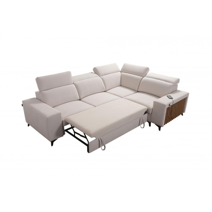 Funkcja spania została oparta na powierzchni o wymiarach 122 cm x 202 cm, pozwalającej na komfortowy nocny wypoczynek. Wbudowany 1 pojemnik na pościel ułatwia przechowywanie kołder i poduszek bez konieczności stosowania dodatkowych szafek. Rozwiązanie to wspiera utrzymanie porządku w strefie dziennej.