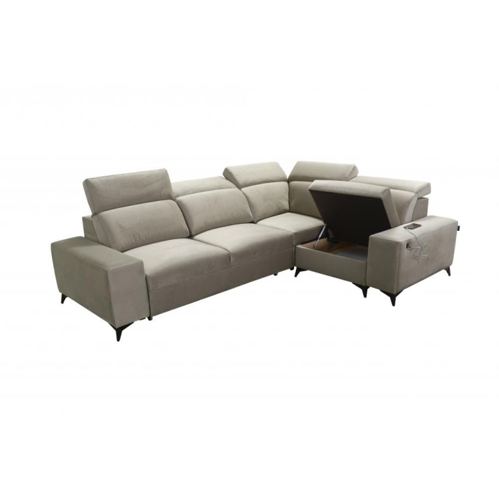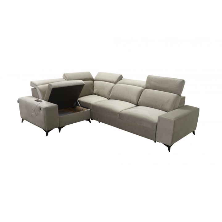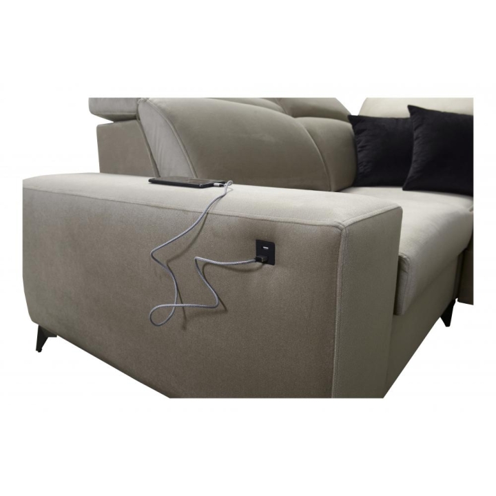 W przedniej części narożnika dostępne są stopki w wariantach metal chrom, metal czarny mat oraz metal złote. Tylne stopki można zamówić w wersjach drewnianych w kolorze czarnym, białym, olcha, venge i buk, a także chromowanych za dopłatą. Dodatkowym udogodnieniem jest port USB dostępny w kolorze czarnym lub srebrnym, umieszczony w zasięgu ręki.
