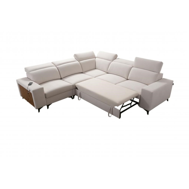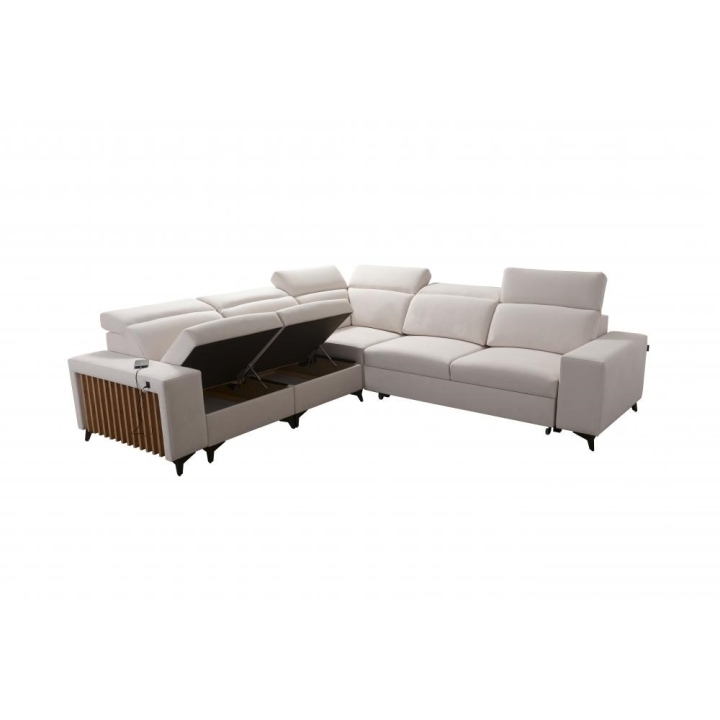 Model oferuje rozkładaną powierzchnię do wypoczynku nocnego o wymiarach 202 cm x 122 cm, co umożliwia wygodne spanie. Dodatkowym atutem są 2 pojemniki na pościel, pozwalające na przechowywanie kołder i poduszek bez zajmowania dodatkowej przestrzeni w pomieszczeniu. Wysokość siedziska wynosi 48 cm, natomiast maksymalna wysokość narożnika 101 cm, co sprzyja komfortowemu podparciu pleców.