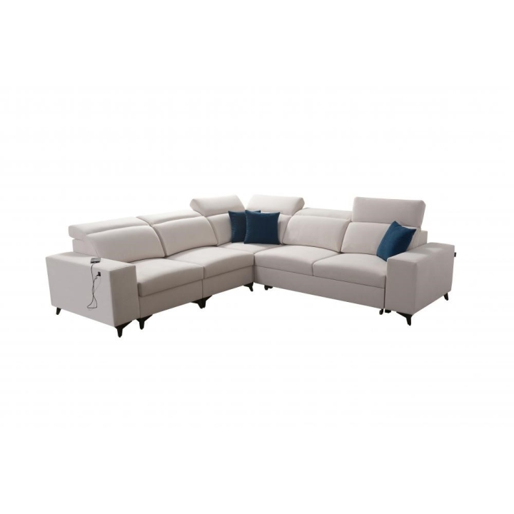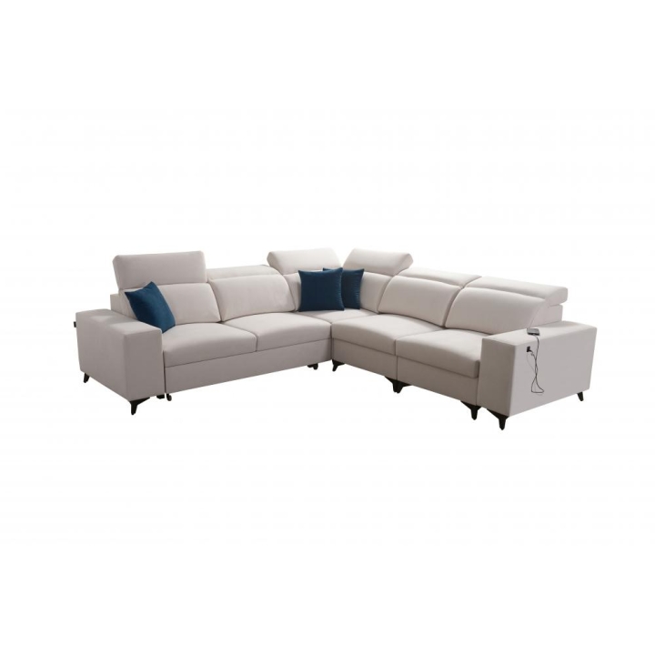 Zastosowano tutaj 6 regulowanych zagłówków, które umożliwiają indywidualne dopasowanie oparcia pod głowę i kark. Rozwiązanie to zwiększa wygodę podczas długiego wypoczynku, czytania lub oglądania telewizji. Dzięki możliwości zmiany kąta nachylenia każdy użytkownik może ustawić narożnik zgodnie ze swoimi preferencjami.