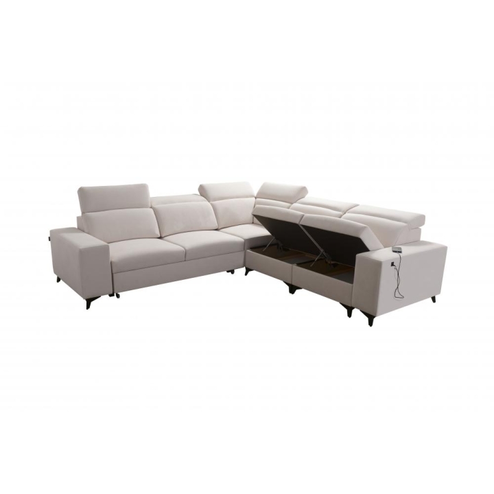 Dodatkowym atutem są 2 pojemniki na pościel, pozwalające na przechowywanie kołder, poduszek lub innych tekstyliów bez potrzeby używania osobnych szaf. Wbudowane gniazdo USB dostępne w kolorze czarnym lub srebrnym umożliwia ładowanie urządzeń mobilnych bez wstawania z miejsca. W komplecie znajdują się także poduszki widoczne na zdjęciu – gratis, stanowiące uzupełnienie całości.