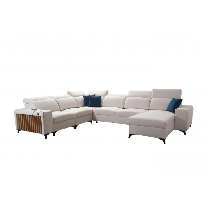 Model został wyposażony w 7 regulowanych zagłówków, umożliwiających indywidualne dopasowanie podparcia głowy i karku. Rozkładana powierzchnia spania o wymiarach 283 cm x 122 cm tworzy obszerne miejsce do nocnego wypoczynku. W konstrukcji przewidziano również 3 pojemniki na pościel, które ułatwiają przechowywanie tekstyliów.