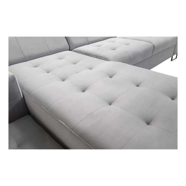 Wykończenie uzupełniają stopki zróżnicowane pod względem materiału i koloru. Z przodu dostępne są metal chrom lub metal czarny mat, natomiast z tyłu do wyboru drewniane w kolorze czarnym, białym, olcha, venge, buk lub chrom za dopłatą. Tak szeroki wachlarz opcji pozwala dopasować narożnik do charakteru wnętrza.