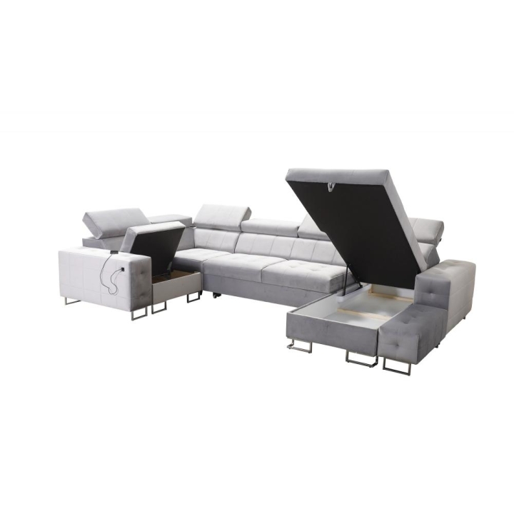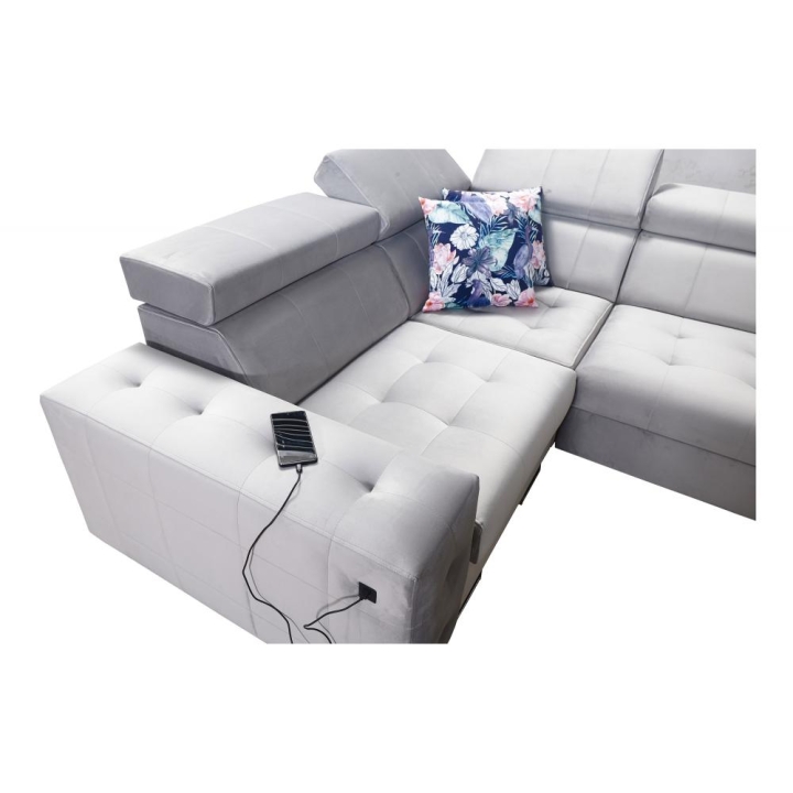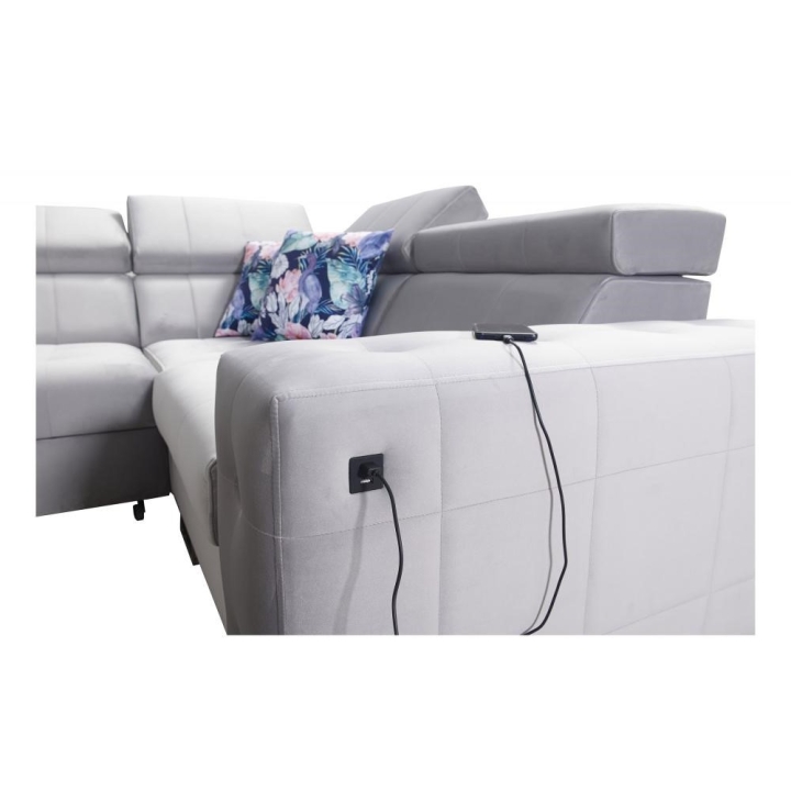 Nowoczesnym uzupełnieniem wyposażenia jest port USB dostępny w kolorze czarnym lub srebrnym, umożliwiający ładowanie urządzeń bez wstawania z kanapy. Klient może wybrać stopki przednie metal chrom lub metal czarny mat, natomiast z tyłu dostępne są drewniane w kolorze czarnym, białym, olcha, venge i buk lub chrom – za dopłatą. Dzięki temu narożnik można dopasować do charakteru wnętrza.