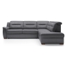 Model ten posiada wysokie oparcia z możliwością regulacji zagłówków, co pozwala na wygodne podparcie pleców i głowy. Regulacja w zakresie wysokości od 93 do 107 cm umożliwia dopasowanie do indywidualnych potrzeb. Dodatkowo tapicerowany tył pozwala ustawić narożnik również w centralnej części pomieszczenia, nie tylko przy ścianie.