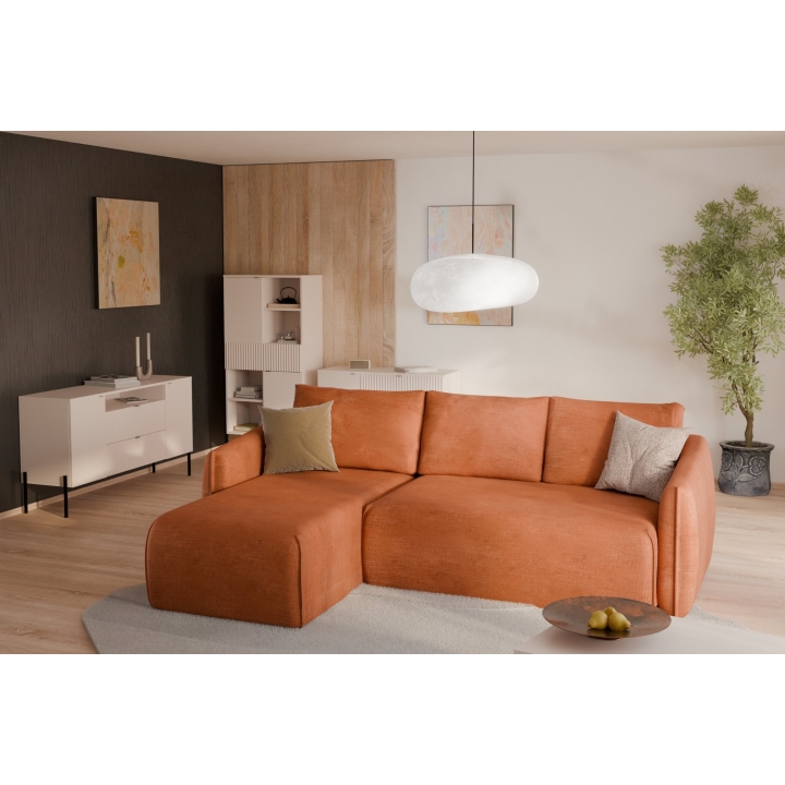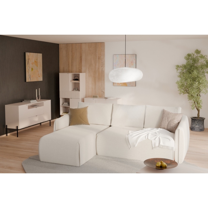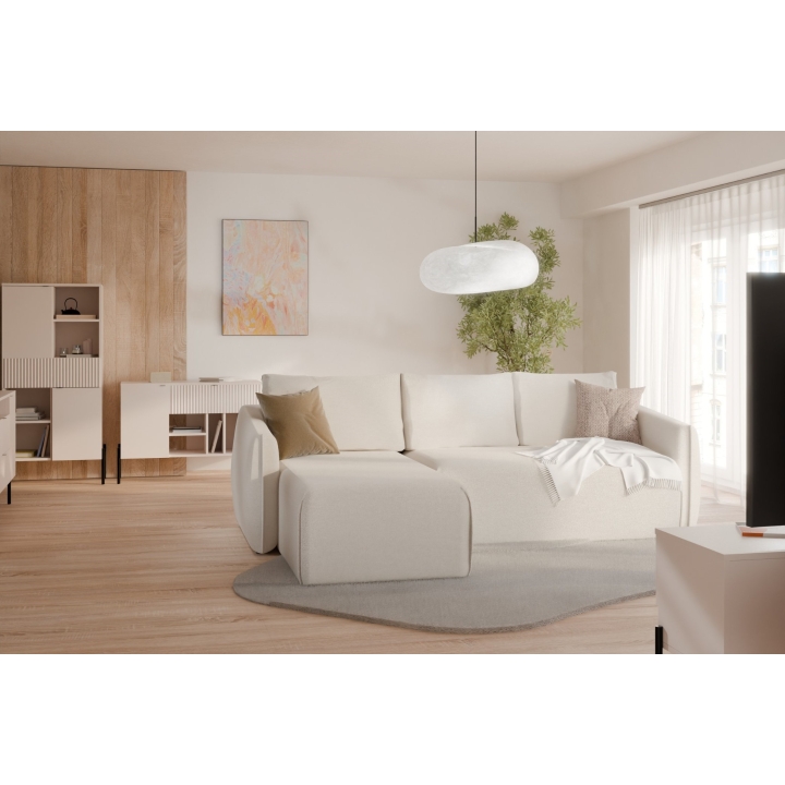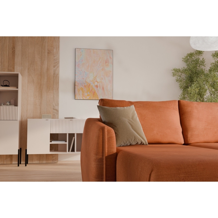 Narożnik Qubo Bydgoskie Meble 2,5F-REC/BK to propozycja dla osób poszukujących mebla o przemyślanej konstrukcji i wysokim komforcie użytkowania. Charakterystyczna, miękka linia oparcia płynnie przechodzi w podłokietnik, tworząc spójną i estetyczną formę. Całość oparta jest na nóżkach z tworzywa sztucznego o wysokości 2,5 cm, które zapewniają stabilność oraz delikatnie unoszą bryłę mebla nad podłogą.