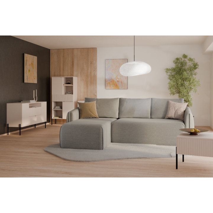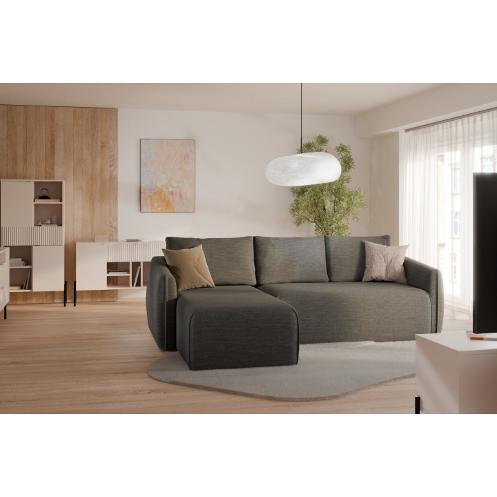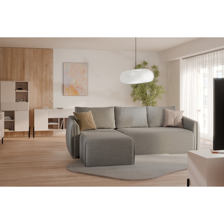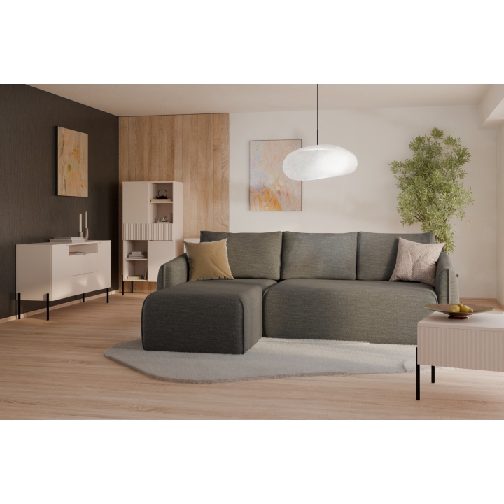 Mebel posiada funkcję spania typu Leopard, pozwalającą w prosty sposób przekształcić narożnik w powierzchnię o wymiarach 220 × 145 cm. To rozwiązanie sprawdza się zarówno przy codziennym użytkowaniu, jak i okazjonalnym noclegu dla gości. Mechanizm rozkładania działa płynnie i nie wymaga dużego nakładu siły.