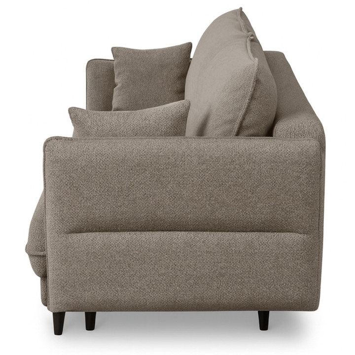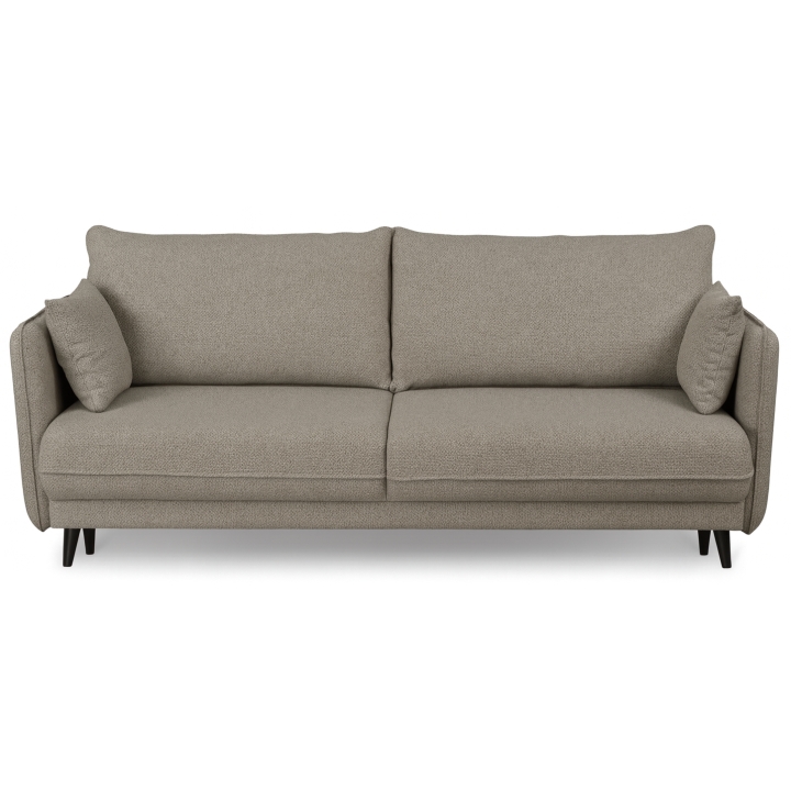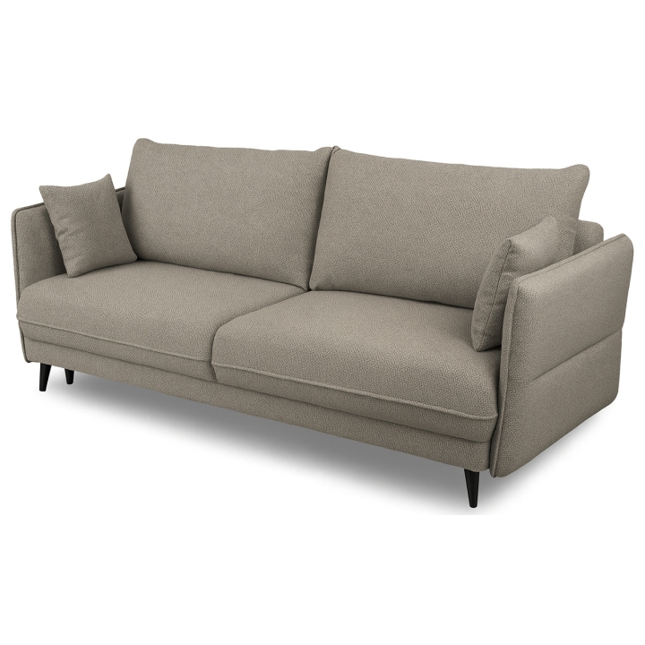 Sofa Oslo z funkcją spania i pojemnikiem na pościel Canvani to trzyosobowy model do salonu, który sprawdzi się zarówno w nowoczesnych, jak i klasycznych wnętrzach. Tapicerowana sofa o szerokości 229 cm, głębokości 98 cm i wysokości 92 cm została osadzona na drewnianych nogach o wysokości 12 cm, które zapewniają prześwit 11 cm pod meblem, umożliwiając łatwe sprzątanie robotem. Siedzisko ma głębokość 52 cm i wysokość 44 cm, co przekłada się na wygodę podczas codziennego użytkowania. Wyraźna, prosta bryła oraz subtelne detale sprawiają, że mebel dobrze wpisuje się w styl minimalistyczny.