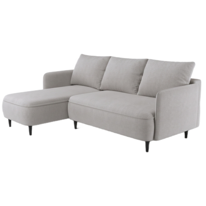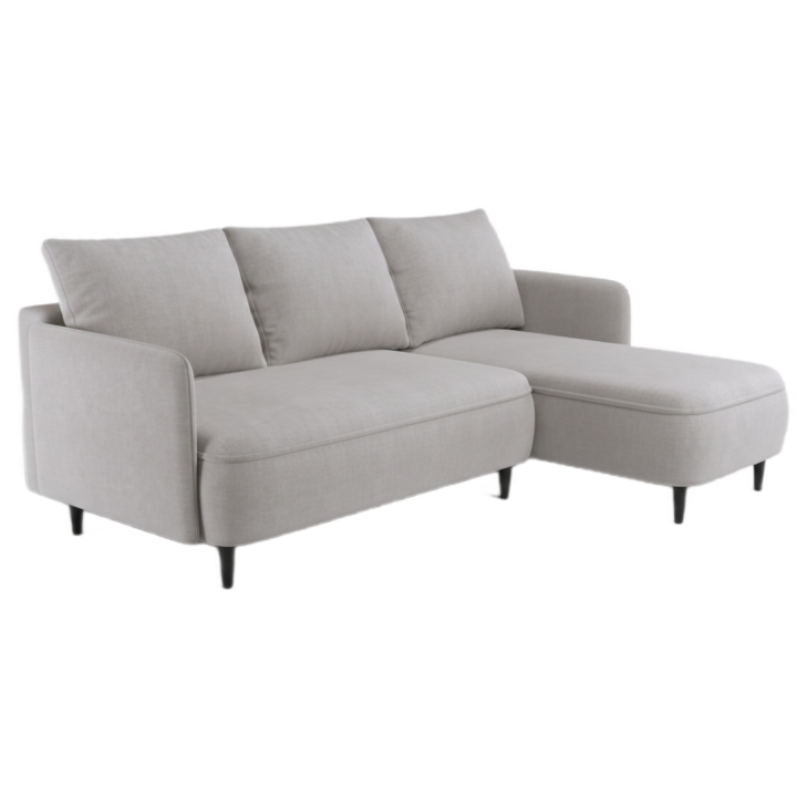 Wielofunkcyjność narożnika zwiększa wbudowany pojemnik na pościel. Jest on idealnie ukryty i oferuje wystarczającą przestrzeń do przechowywania kompletu pościeli lub innych tekstyliów, co w znaczący sposób pomaga w organizacji przestrzeni i oszczędności miejsca w małych pokojach.