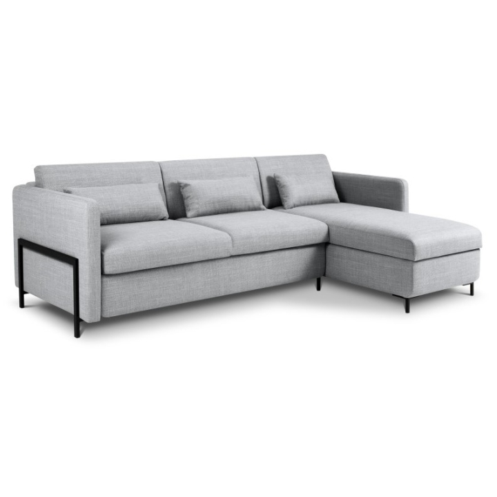 Stabilna konstrukcja oparta na ramie z drewna sosnowego, płyt wiórowych i sklejki zapewnia wytrzymałość, a wysokie czarne metalowe nóżki o wysokości 10 cm nadają lekkości i podkreślają nowoczesny styl. Narożnik do salonu Yanis to idealne rozwiązanie, które łączy komfort użytkowania, trwałość i wyjątkową estetykę.