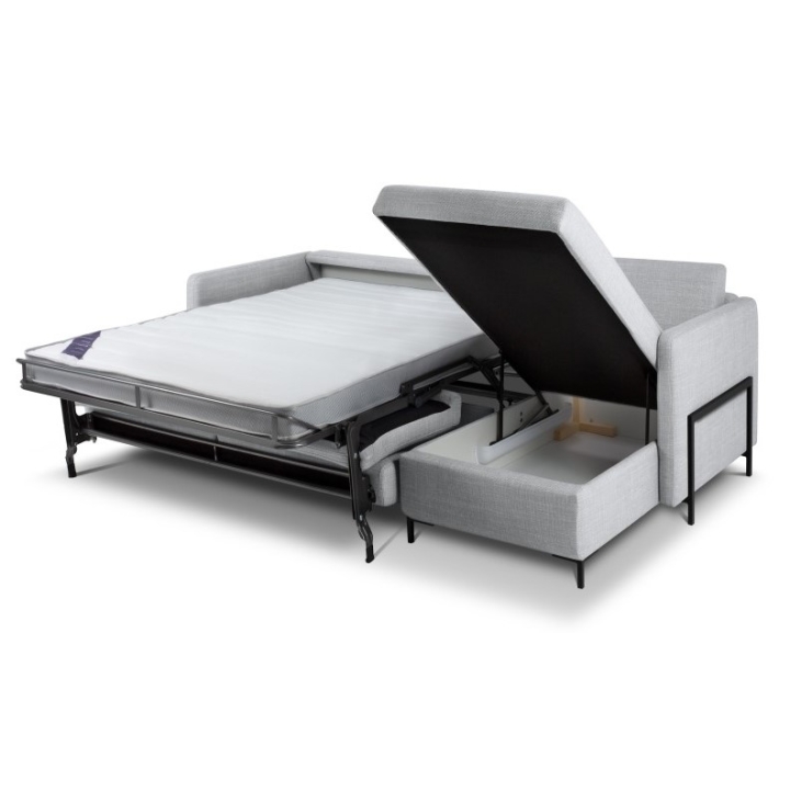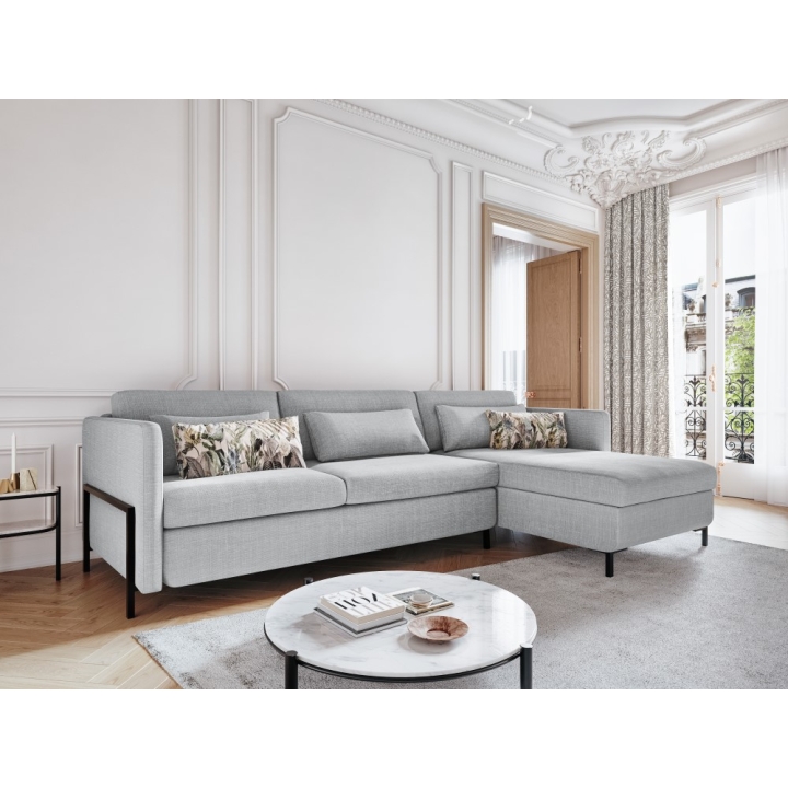 Narożnik 4-os. z funkcją spania Tkanina Strukturalna Yanis Christian Lacroix to nowoczesny narożnik, idealny do salonów urządzonych w stylu minimalistycznym. Jego uniwersalna konstrukcja dostępna w wersji lewostronnej lub prawostronnej oraz szeroki wybór kolorów tkanin strukturalnych pozwala na pełne dopasowanie do wnętrza. Narożnik wyposażony jest w stelaż włoski z materacem , zapewniający dużą powierzchnię spania o wymiarach 205x140 cm, oraz pojemnik na pościel umieszczony w szezlongu