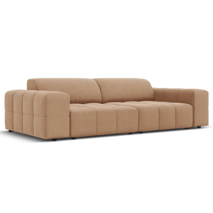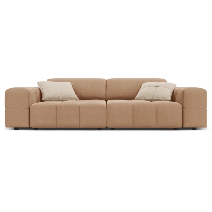 Dostępność szerokiej gamy kolorów tapicerki, w tym naturalnych, jasnych odcieni, jak i wyrazistych, ciemnycyh, umożliwia dopasowanie sofy do rozmaitych stylów aranżacyjnych. Tapicerka welurowa zmienia swój odcień w zależności od kąta padania światła, co nadaje jej głębię oraz dynamiczny wygląd.
