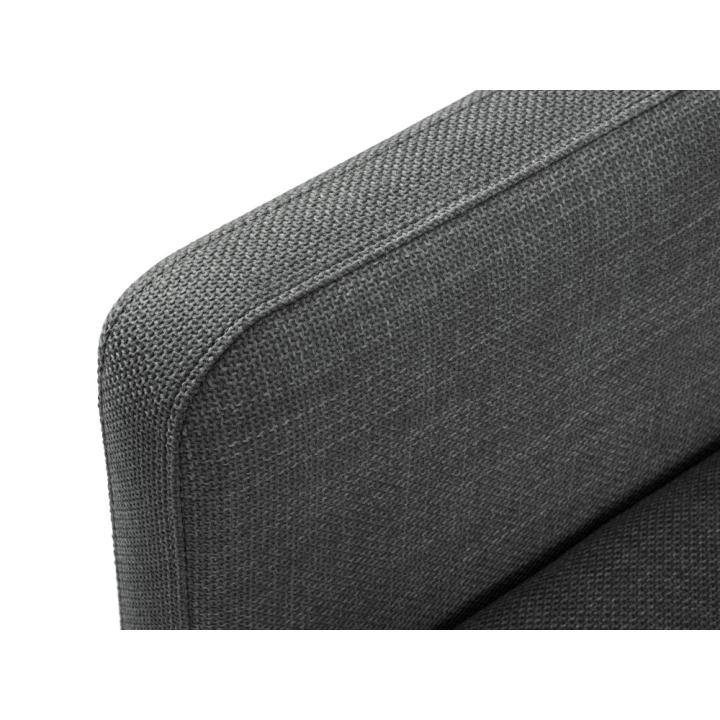 Obicie wykonane z tkaniny strukturalnej wyróżnia się wyrazistym wzorem i trójwymiarowym efektem. Gruby splot i delikatny połysk nadają sofie wyjątkowego charakteru. Materiał jest odporny na ścieranie (50 000 cykli Martindale’a) i mechacenie, co zapewnia trwałość na lata. Certyfikat OEKO-TEX® STANDARD 100 gwarantuje bezpieczeństwo użytkowania. Wypełnienie siedziska z pianki poliuretanowej o gęstości 35 kg/m³, a oparcia z pianki poliuretanowej 18 kg/m³ zapewniają wyjątkowy komfort.