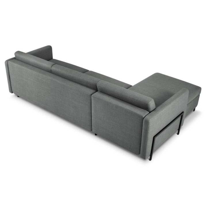 Stabilna konstrukcja narożnika oparta jest na solidnej ramie z drewna sosnowego, płyty wiórowej i sklejki. Czarne metalowe nóżki o wysokości 10 cm podkreślają nowoczesny design, a trzy poduszki oparciowe i trzy podnercza wypełnione Foam Crisp i silikonem dodają wygody. Narożnik 5-osobowy Yanis to doskonały wybór dla tych, którzy szukają stylowego rozwiązania do swojego salonu.
