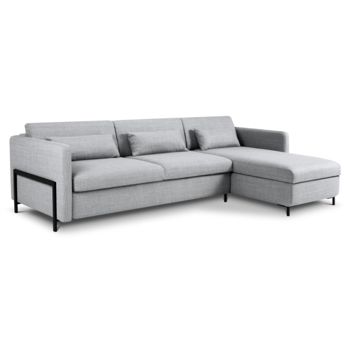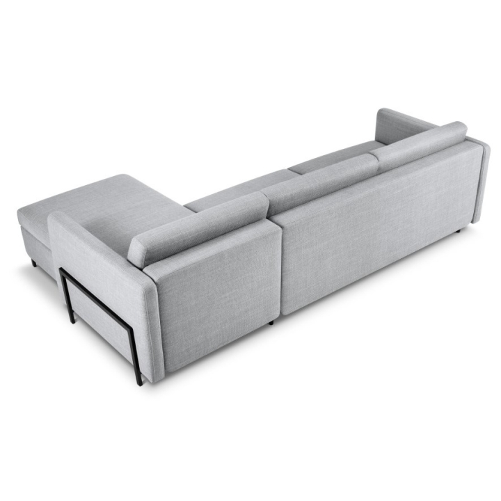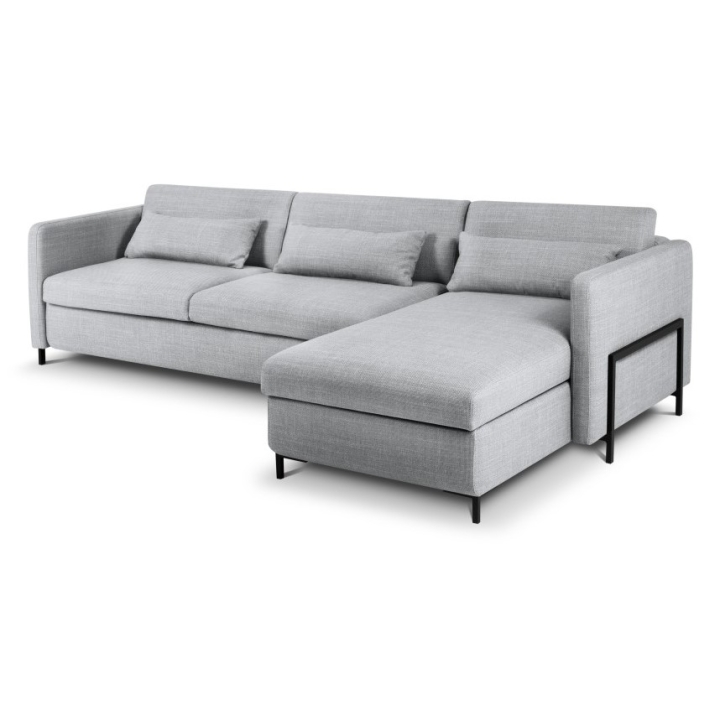 Stabilna konstrukcja narożnika oparta jest na solidnej ramie z drewna sosnowego, płyty wiórowej i sklejki. Czarne metalowe nóżki o wysokości 10 cm podkreślają nowoczesny design, a trzy poduszki oparciowe i trzy podnercza wypełnione Foam Crisp i silikonem dodają wygody. Narożnik 5-osobowy Yanis to doskonały wybór dla tych, którzy szukają stylowego rozwiązania do swojego salonu.