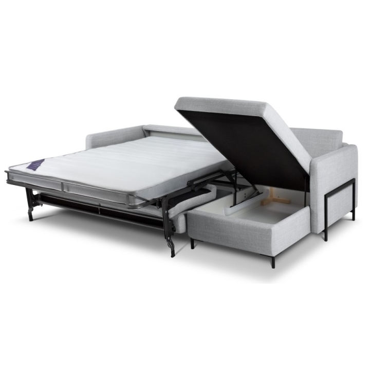 Narożnik 5-os. z funkcją spania Tkanina Strukturalna Yanis Christian Lacroix to nowoczesny mebel, który łączy wygodę z estetyką, idealny do salonów w stylu minimalistycznym i industrialnym. Konstrukcja narożnika dostępna w wersji lewo- lub prawostronnej, zapewnia pełną swobodę aranżacyjną, a szeroki wybór kolorów tkanin strukturalnych umożliwia idealne dopasowanie do wnętrza. Funkcja spania typu stelaż włoski oferuje dużą powierzchnię spania 205x160 cm, a pojemnik na pościel w leżance o wymiarach 134x77x20 pozwala na wygodne przechowywanie.