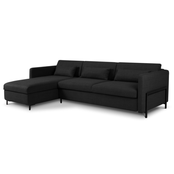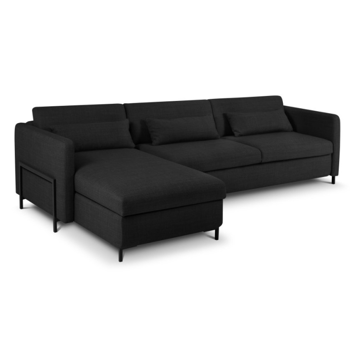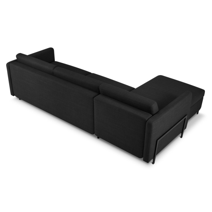 Stabilna konstrukcja narożnika oparta jest na solidnej ramie z drewna sosnowego, płyty wiórowej i sklejki. Czarne metalowe nóżki o wysokości 10 cm podkreślają nowoczesny design, a trzy poduszki oparciowe i trzy podnercza wypełnione Foam Crisp i silikonem dodają wygody. Narożnik 5-osobowy Yanis to doskonały wybór dla tych, którzy szukają stylowego rozwiązania do swojego salonu.
