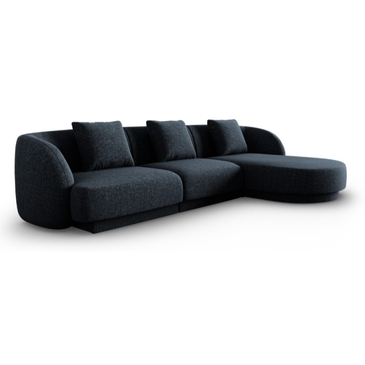 Narożnik 4-os. Tulum Szenil Cosmopolitan-design to nowoczesny model o zaokrąglonych kształtach, który doskonale wpisuje się w minimalistyczne i designerskie wnętrza. Szerokość 255 cm, głębokość 156 cm, wysokość 70 cm oraz wysokość siedziska 40 cm zapewniają wygodę zarówno podczas codziennego relaksu, jak i spotkań towarzyskich. Obicie z tkaniny szenilowej Haga, dostępnej w szerokiej gamie kolorystycznej, wyróżnia się efektem 3D, subtelnym połyskiem i wysoką odpornością na ścieranie (60 000 cykli Martindale). Niskie plastikowe nogi niemal niewidoczne, podkreślają nowoczesny charakter mebla.