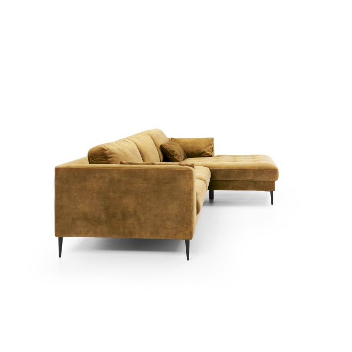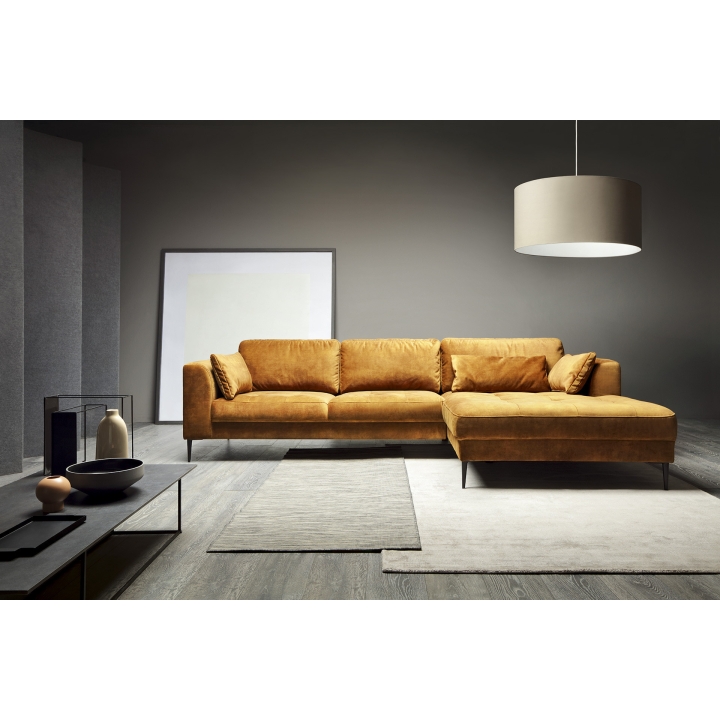 Narożnik Luzi firmy Etap-Sofa to propozycja o nowoczesnej, lekkiej formie, która wprowadza do wnętrza poczucie przestronności i harmonii. Smukła sylwetka mebla podkreślona została przez wysokie metalowe nóżki, a proste, podłużne poduszki oparciowe dodają mu wizualnej lekkości. Konstrukcja narożnika została zaprojektowana w kształcie litery L, z możliwością wyboru układu prawego lub lewego (P/L), co pozwala dopasować go do indywidualnych potrzeb przestrzennych.