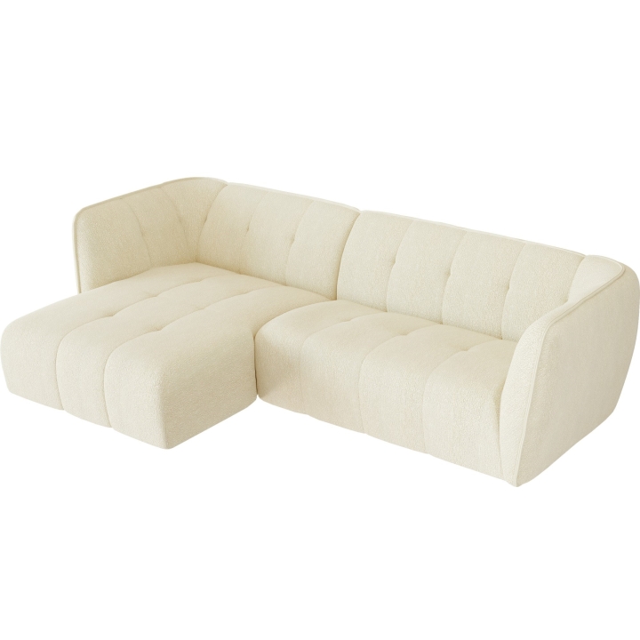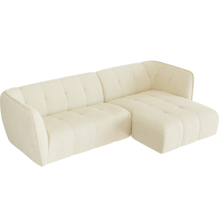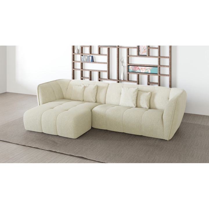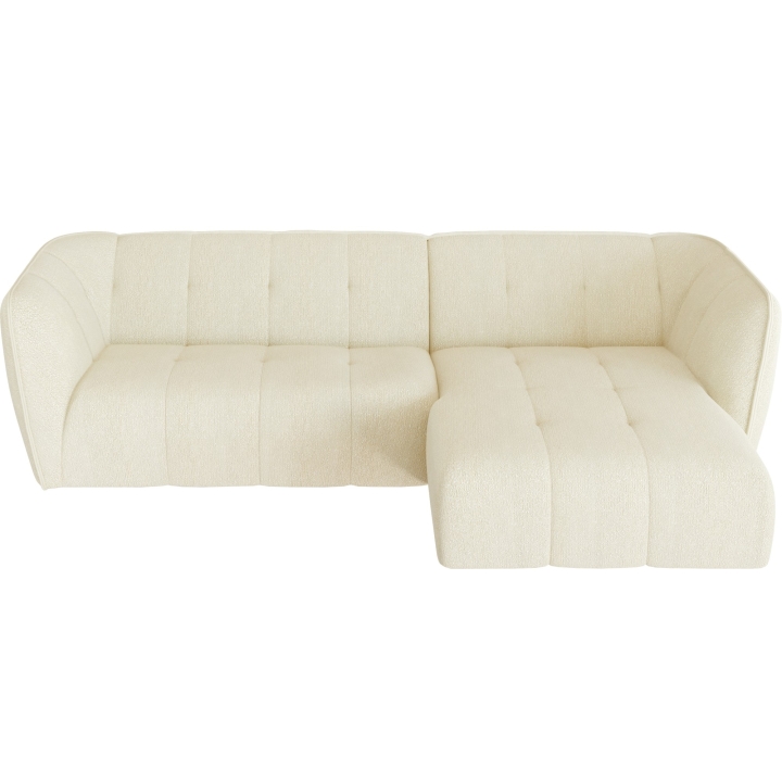 Oparcie narożnika wyposażono w pasy elastyczne i wypełnienie z pianki poliuretanowej, które zapewniają stabilne wsparcie dla pleców. Wysokie oparcie sprzyja utrzymaniu prawidłowej postawy ciała, a miękka, pikowana powierzchnia wprowadza przyjemne wrażenie miękkości. Starannie dobrane proporcje elementów konstrukcyjnych przekładają się na wyjątkową wygodę użytkowania.
