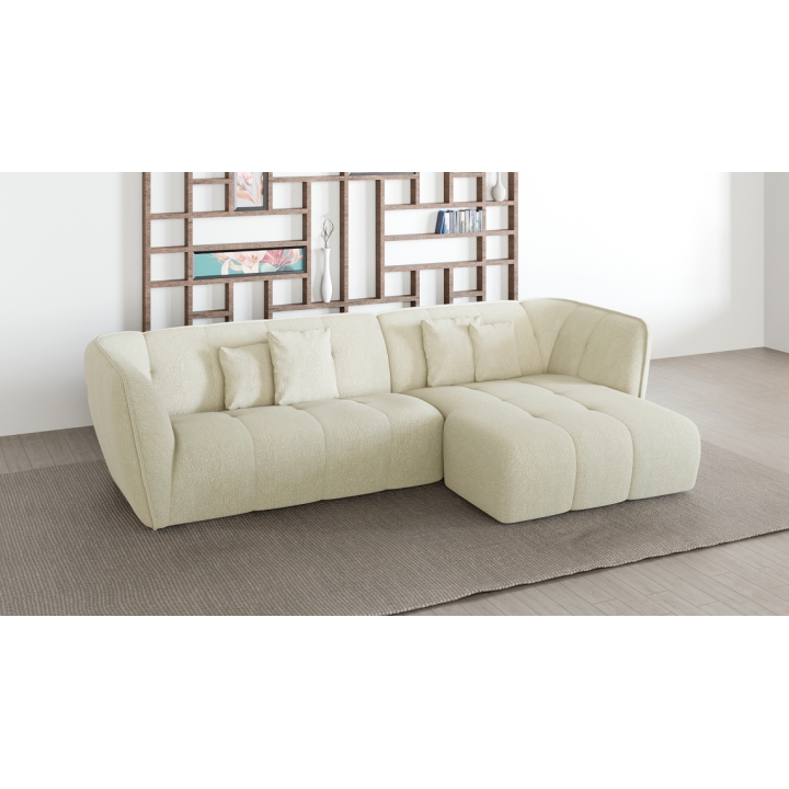 Narożnik nie posiada funkcji spania ani pojemnika na pościel, co pozwoliło zachować lekką konstrukcję i przeznaczenie typowe dla strefy dziennej. Użytkownik ma możliwość wyboru spośród szerokiej gamy tkanin obiciowych, obejmującej wiele kolorów i faktur. Model nie występuje w wersji skórzanej, co podkreśla jego miękki, tapicerowany charakter oraz umożliwia pełną personalizację wizualną.