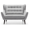 Charakterystycznym elementem sofy są jej wysokie drewniane nóżki, dostępne w wielu wariantach wybarwienia, takich jak wenge, czereśnia antyczna, buk naturalny, dąb naturalny, orzech, a także w kolorze srebrnym czy czarnym. Wysunięte ku górze nóżki dodają całości lekkości i ułatwiają utrzymanie porządku wokół mebla. Dodatkowo pikowane siedzisko oraz opływowy kształt podłokietników i boków podkreślają dopracowaną formę.