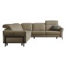 Narożnik Mellow dostępny jest w konfiguracji 3RF(2xRF ele)-E-2,5F, w kształcie litery L z możliwością wyboru strony – lewej lub prawej. Dodatkowym udogodnieniem są regulowane zagłówki, które pozwalają dopasować wysokość oparcia do indywidualnych potrzeb użytkownika. Wysokie, metalowe nóżki dostępne są w kolorze czarnym lub w wersji stal szczotkowana, co umożliwia dopasowanie mebla do charakteru wnętrza.