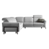 Narożnik Mellow dostępny jest w konfiguracji 3RF(2xRF ele)-E-2,5F, w kształcie litery L z możliwością wyboru strony – lewej lub prawej. Dodatkowym udogodnieniem są regulowane zagłówki, które pozwalają dopasować wysokość oparcia do indywidualnych potrzeb użytkownika. Wysokie, metalowe nóżki dostępne są w kolorze czarnym lub w wersji stal szczotkowana, co umożliwia dopasowanie mebla do charakteru wnętrza.