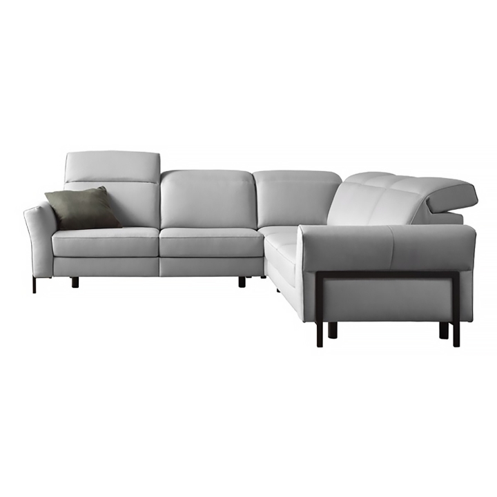 Narożnik Mellow dostępny jest w konfiguracji 3RF(2xRF ele)-E-2,5F, w kształcie litery L z możliwością wyboru strony – lewej lub prawej. Dodatkowym udogodnieniem są regulowane zagłówki, które pozwalają dopasować wysokość oparcia do indywidualnych potrzeb użytkownika. Wysokie, metalowe nóżki dostępne są w kolorze czarnym lub w wersji stal szczotkowana, co umożliwia dopasowanie mebla do charakteru wnętrza.