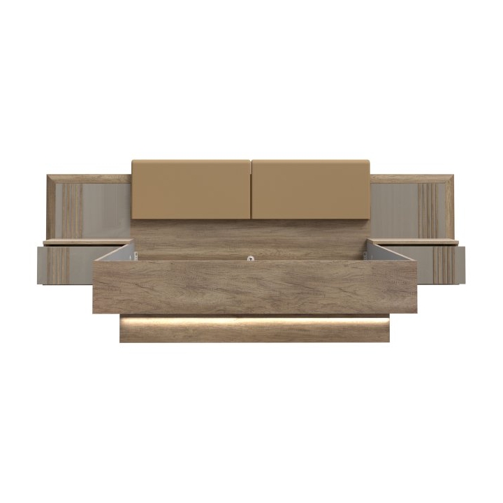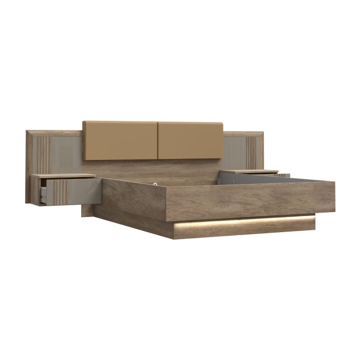 Łóżko z oświetleniem i szafkami nocnymi 160x200 cm SAVONA Dąb Antyczny/Beżowy ForteSalon meblowy w Grudziądzu