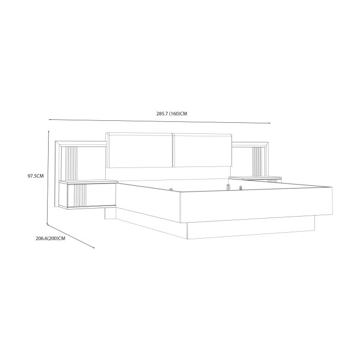 Powierzchnia spania o wymiarach 160x200 cm zapewnia odpowiednie warunki do regeneracji. Całkowite wymiary mebla wynoszą szerokość 160 cm, wysokość 97,5 cm oraz głębokość 200 cm, co ułatwia dopasowanie do standardowych pomieszczeń. Do kompletu należy dokupić materac o wymiarach 160x200 cm.